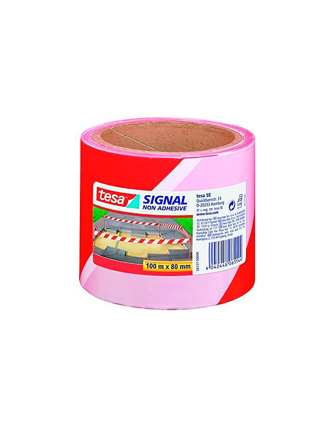 Cinta de polipropileno sin adhesivo ideal para indicar y delimitar obstáculos y zonas peligrosas. Esta cinta, con rayas rojas, es resistente a rayos UV. Medidas: 100 m x 80 mm.