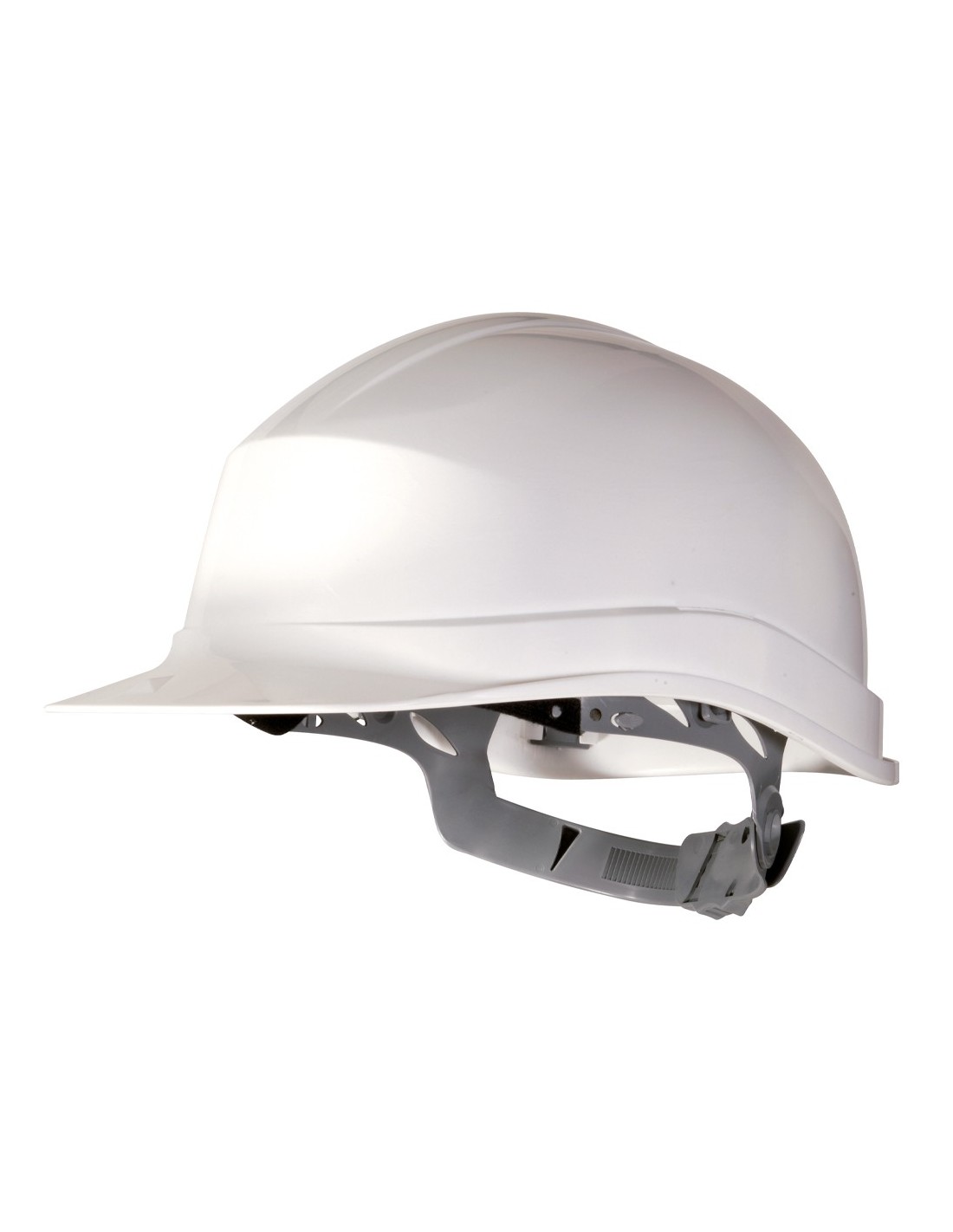 Casco de obra de polietileno de alta densidad (HDPE) tratamiento ultravioleta. Con gorro interior de 8 puntos de fijación. Sudadera esponja. Único por apriete guía. Ajustable desde los 53 a los 63 centímetros de circunferencia de la cabeza. Color blanco. Material: polietileno. Cumple normativa EN397.