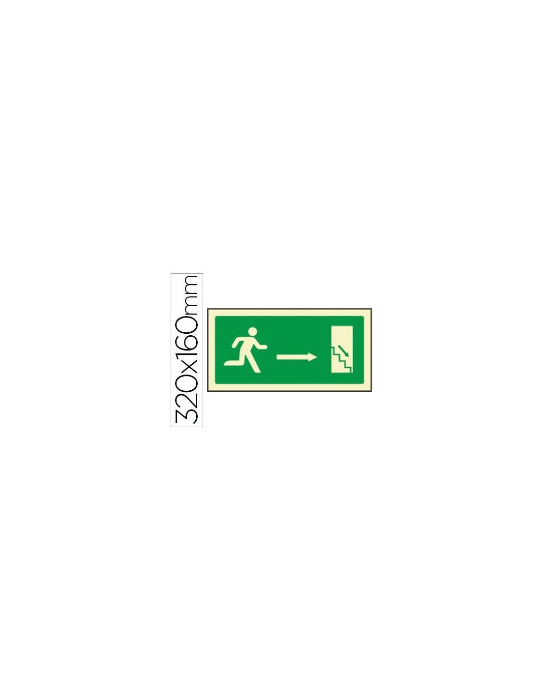 PICTO SEÑAL SALIDA EMERGENCIA DERECHA ESCALERA BAJANDO 320X160 MM