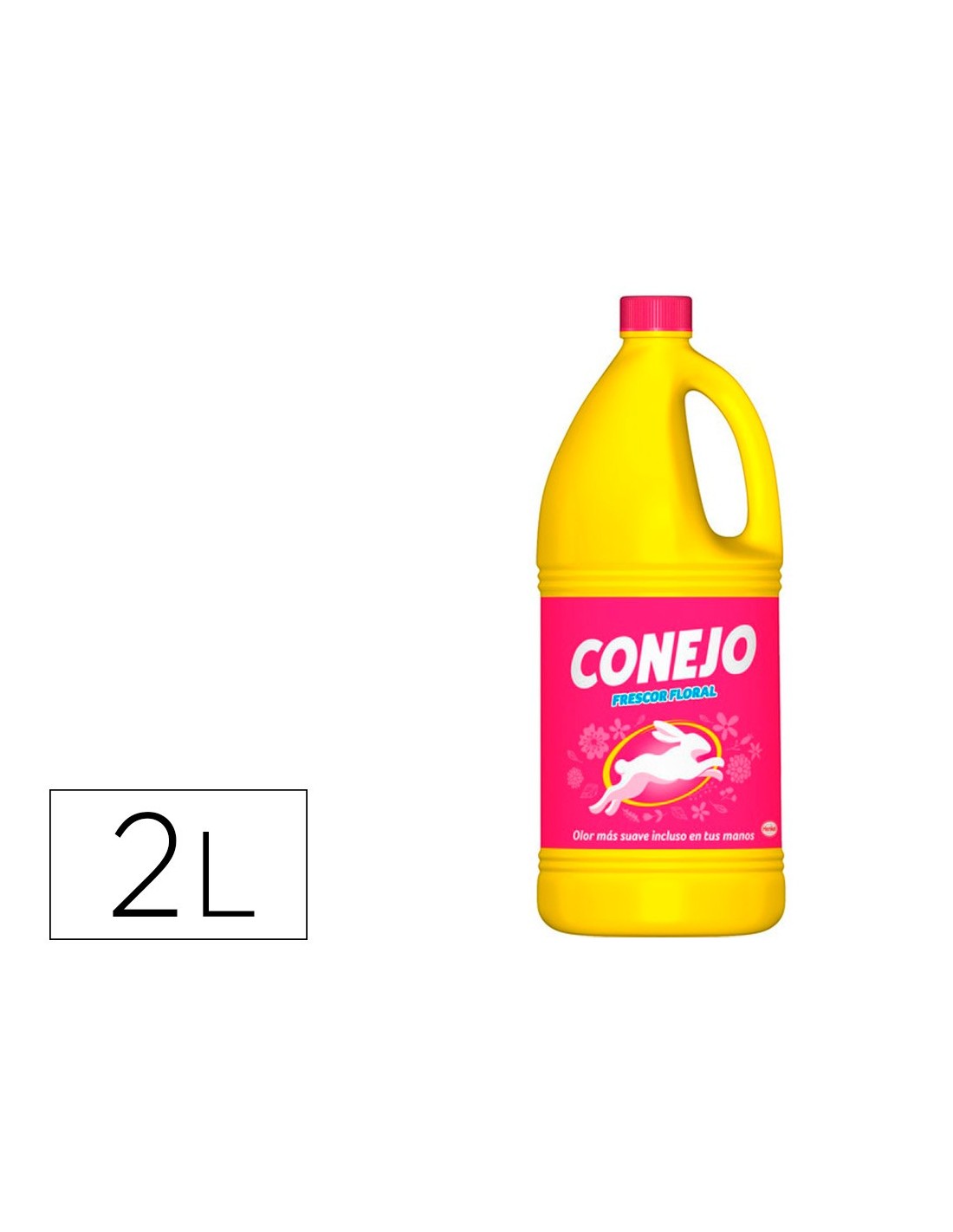 CONEJO FRESCOR FLORAL, PREPARADO CON LEJÍA LIMPIAHOGAR. PARA DESINFECTAR, LIMPIAR Y DESODORIZAR CUALQUIER RINCÓN. LA VARIEDAD FRESCOR FLORAL OFRECE LA MÁXIMA GARANTÍA DE HIGIENE Y UN AGRADABLE PERFUME. OLOR MÁS SUAVE. NO APTA PARA LA DESINFECCIÓN DE AGUA DE BEBIDA.