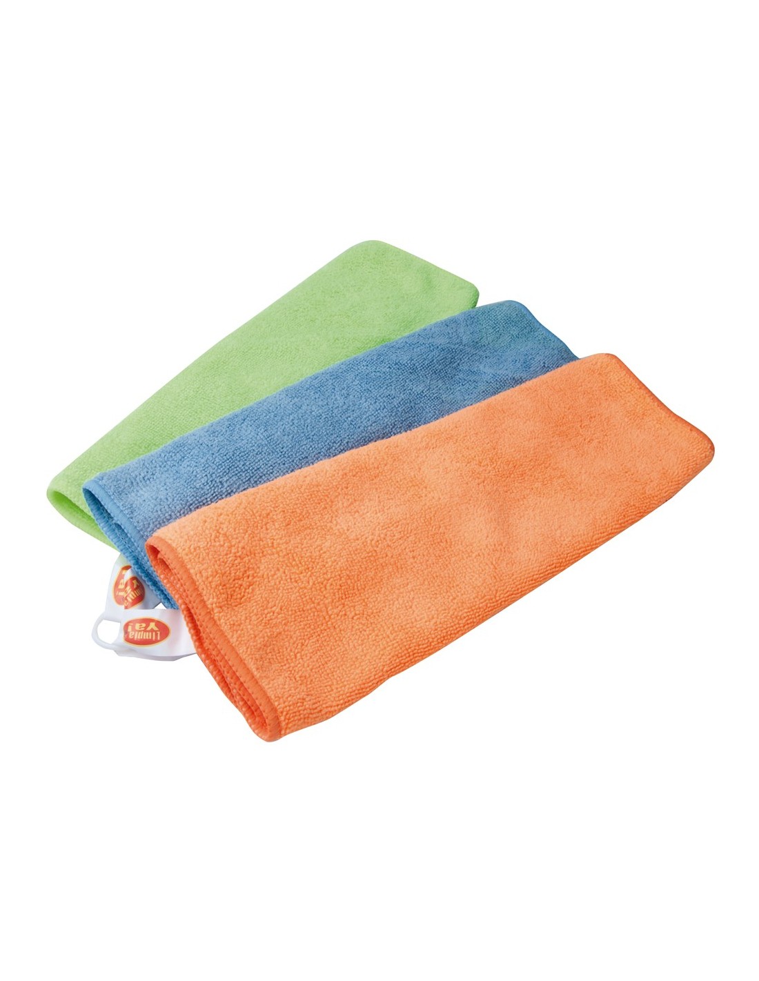 Bayeta multiusos de microfibra. Limpieza ecológica, sin productos químicos ideal para todo tipo de superficies. Absorbe la grasa y el polvo sin dejar rastro. Para limpieza en seco y húmedo. Medidas: 390 x 300 mm. El pack de 3 unidades.