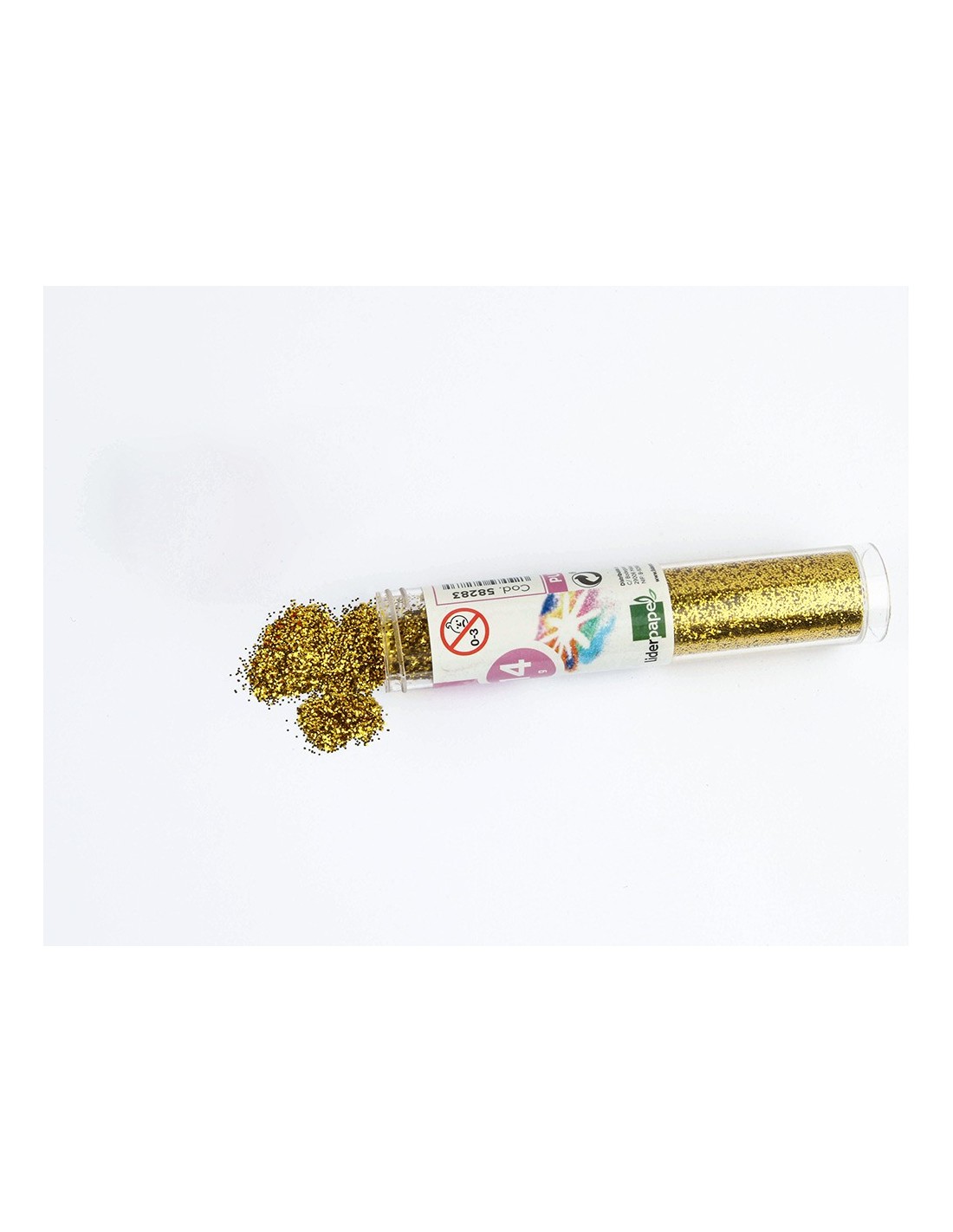 Purpurina fantasía oro y plata. Ideal para trabajos manuales. Recomendada a partir de los 3 años de edad. El bote de 14 g.