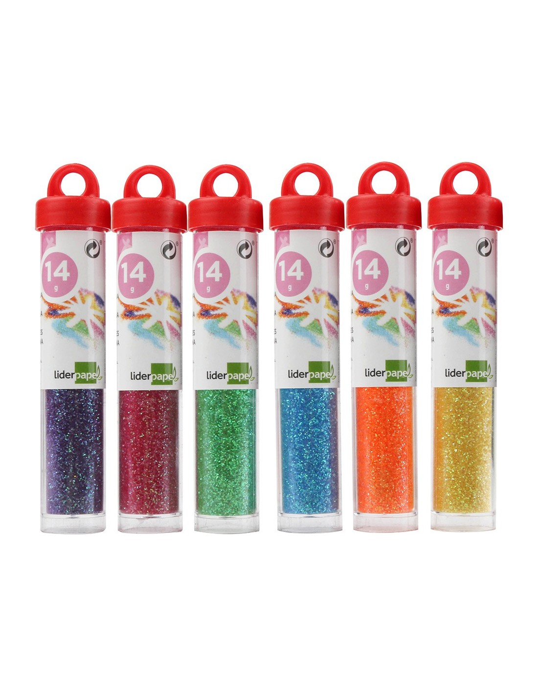Purpurina fantasía colores surtidos metálicos y metálicos pasteles. Ideal para trabajos manuales. Recomendada a partir de los 3 años de edad. El bote de 14 g.
