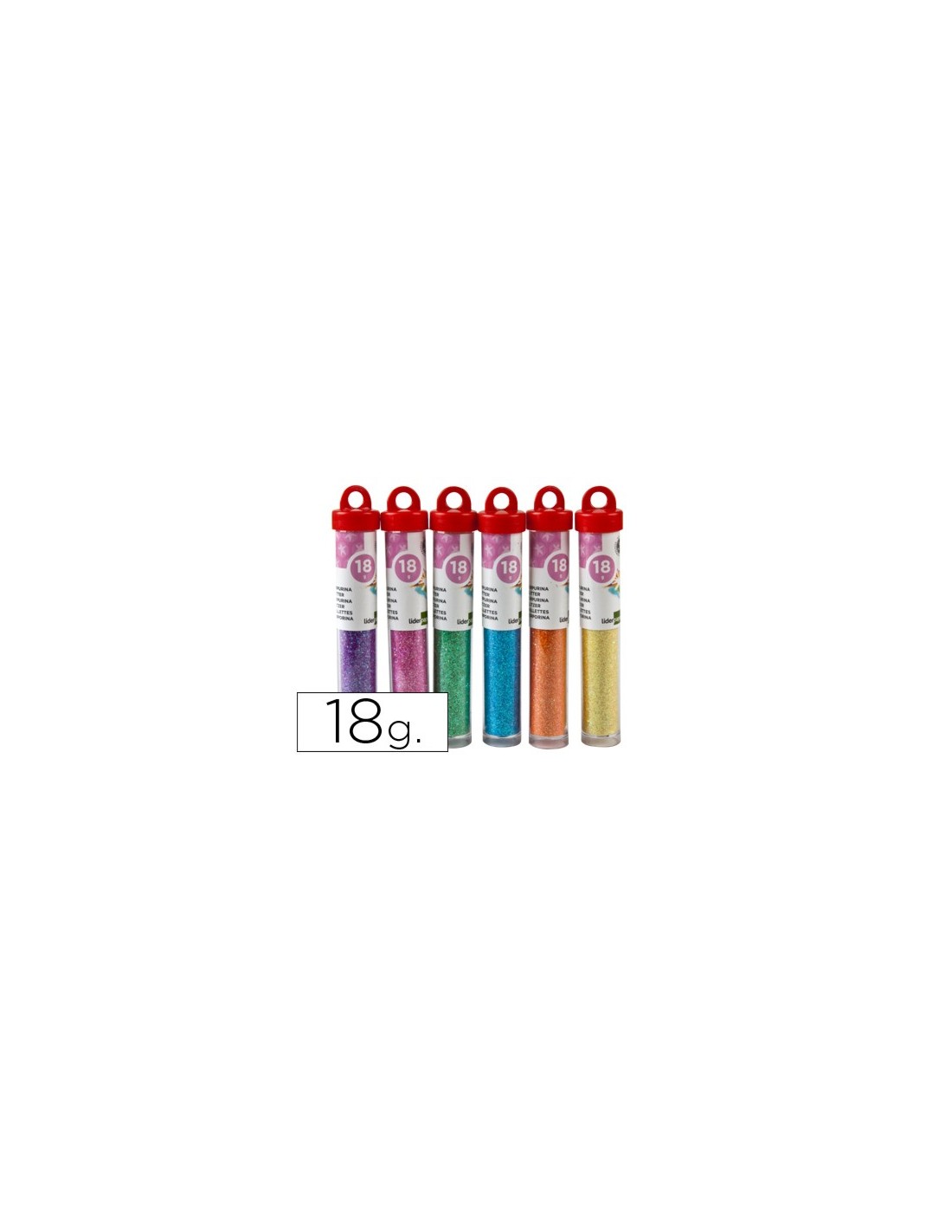Purpurina fantasía colores metálicos y metálicos pasteles. Ideal para trabajos manuales. Recomendada a partir de los 3 años de edad. El bote de 18 g.