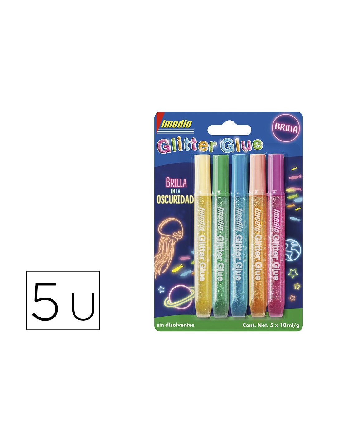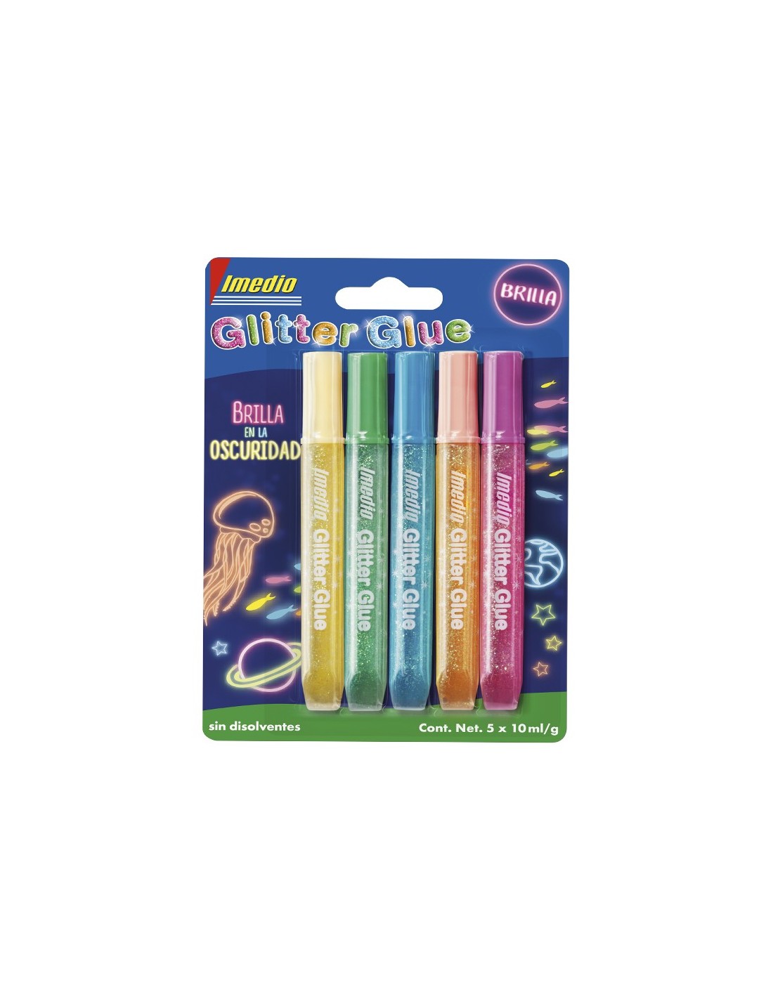 PEGAMENTO IMEDIO GLITTER BRILLA OSCURIDAD MANUALIDADES 10ML 5UD.SURT.
