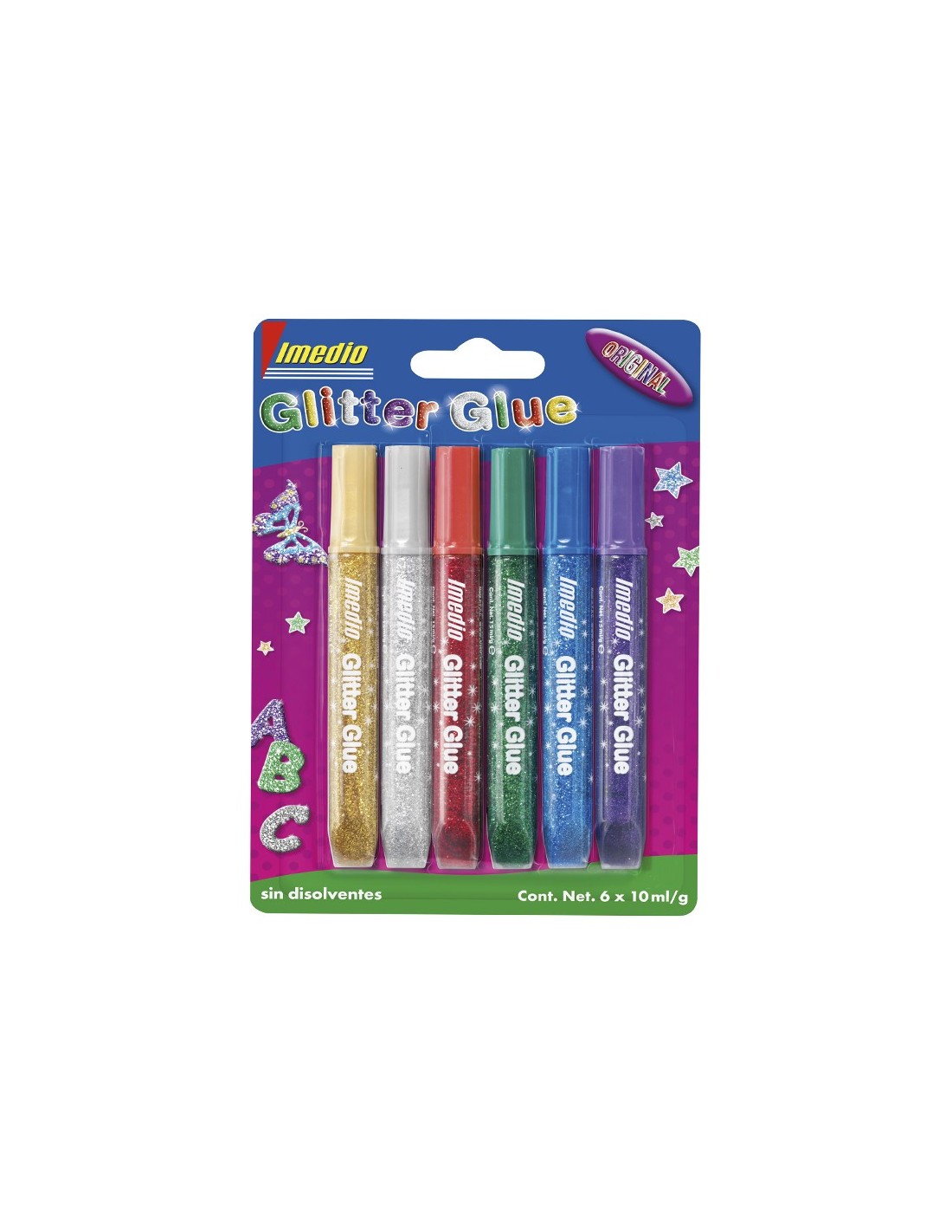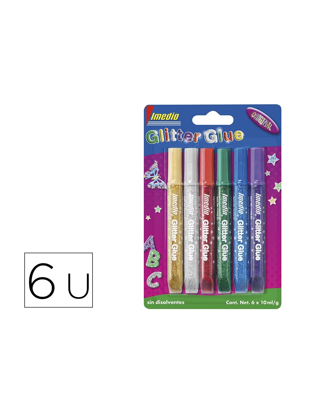 PEGAMENTO IMEDIO GLITTER GLUE ORIGINAL MANUALIDADES 10ML 6 UD.SURT.