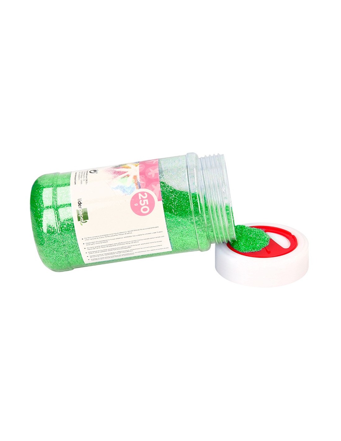Purpurina fantasía colores pasteles. Ideal para trabajos manuales. Recomendada a partir de los 3 años de edad. Bote de 250 g. Color Verde Pastel.