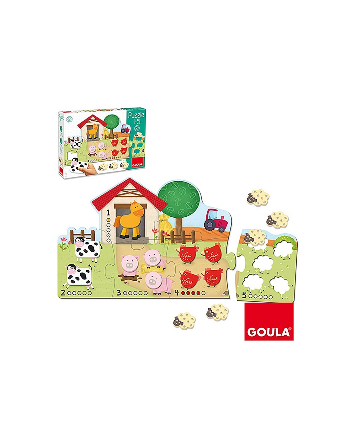 Puzle gigante ambientado en una granja con 6 piezas grandes de cartón grueso y 15 piezas de madera serigrafiadas. Para colocar a los diferentes animalitos donde corresponda. Gracias a su grosor se pueden manipular y encajar las piezas más fácilmente. Desarrolla la coordinación manual ojo/mano. Iniciación al número. Más de 2 años. Medidas: 30 x 22 x 5 cm.