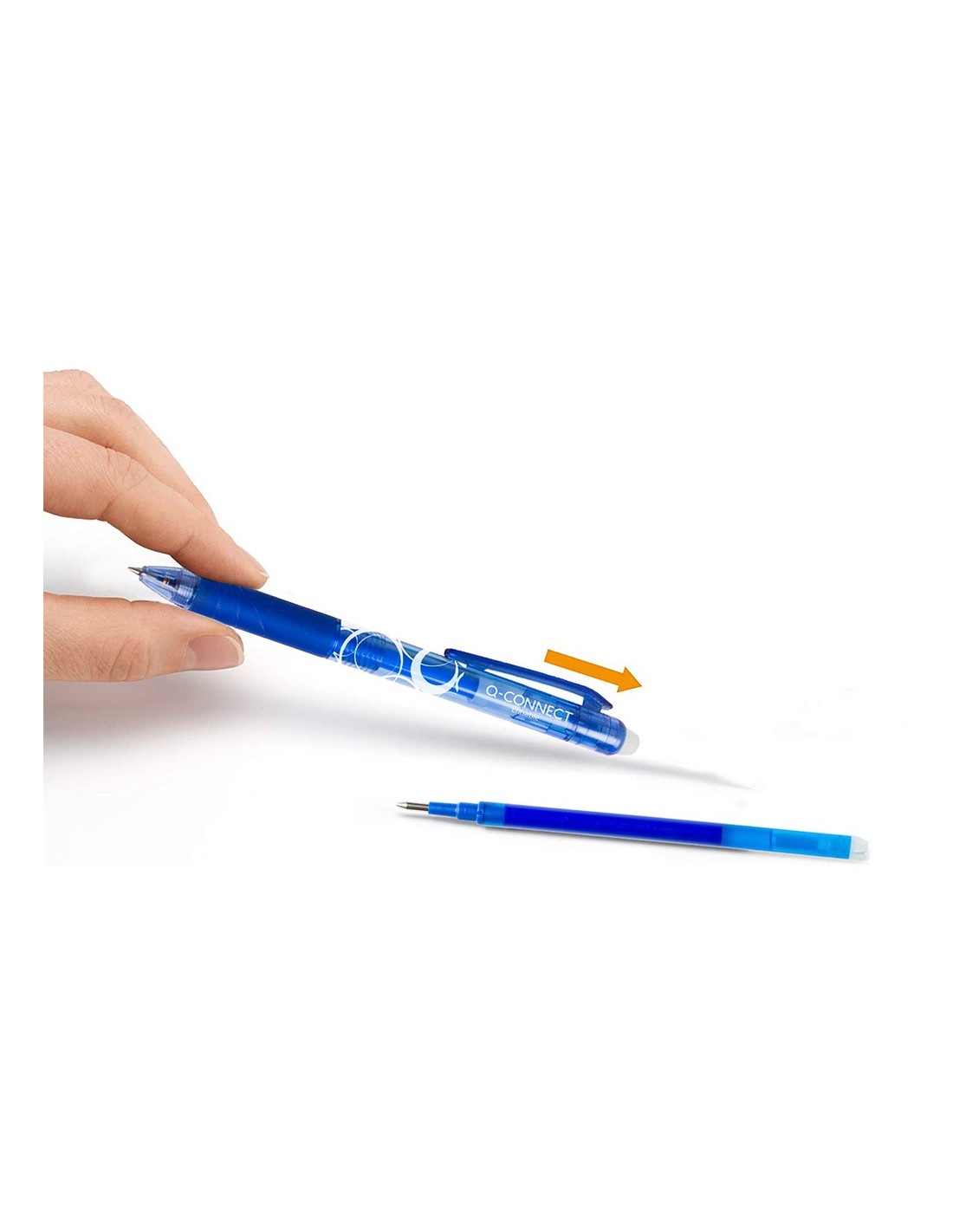 Recambio para bolígrafos Q-Connect borrable códigos 153565, 153564, 153566 y 153567. Punta de bola de 1 mm. Trazo de 0,7 mm. La caja de 3 recambios.