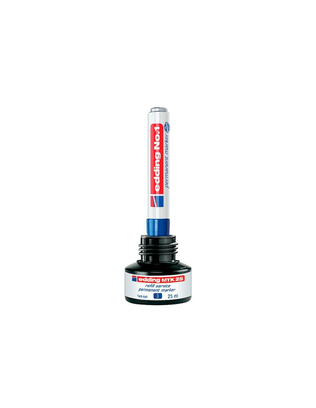 Tinta permanente casi inodora. Sirve para rellenar todo tipo de marcadores Edding recargables. El frasco de 100 ml.