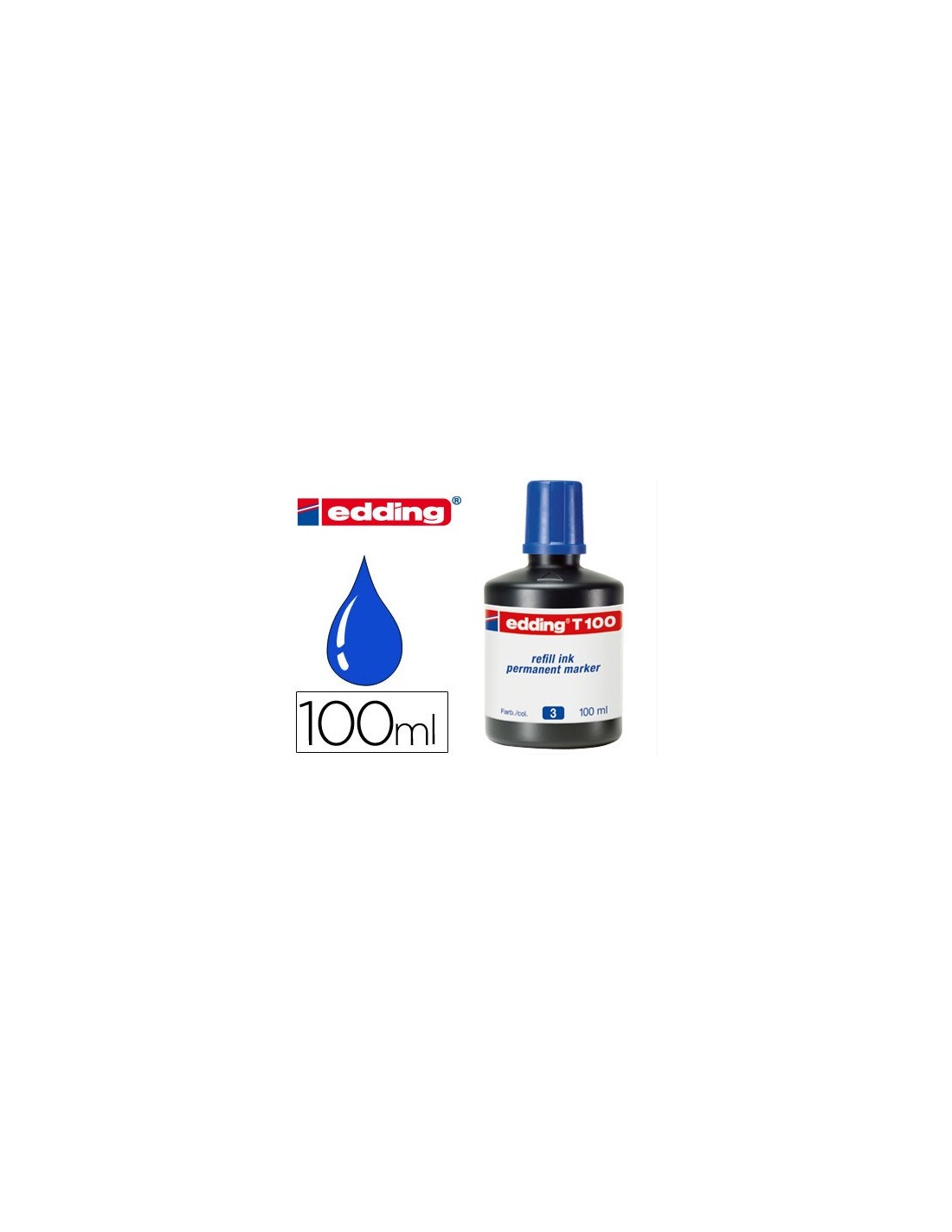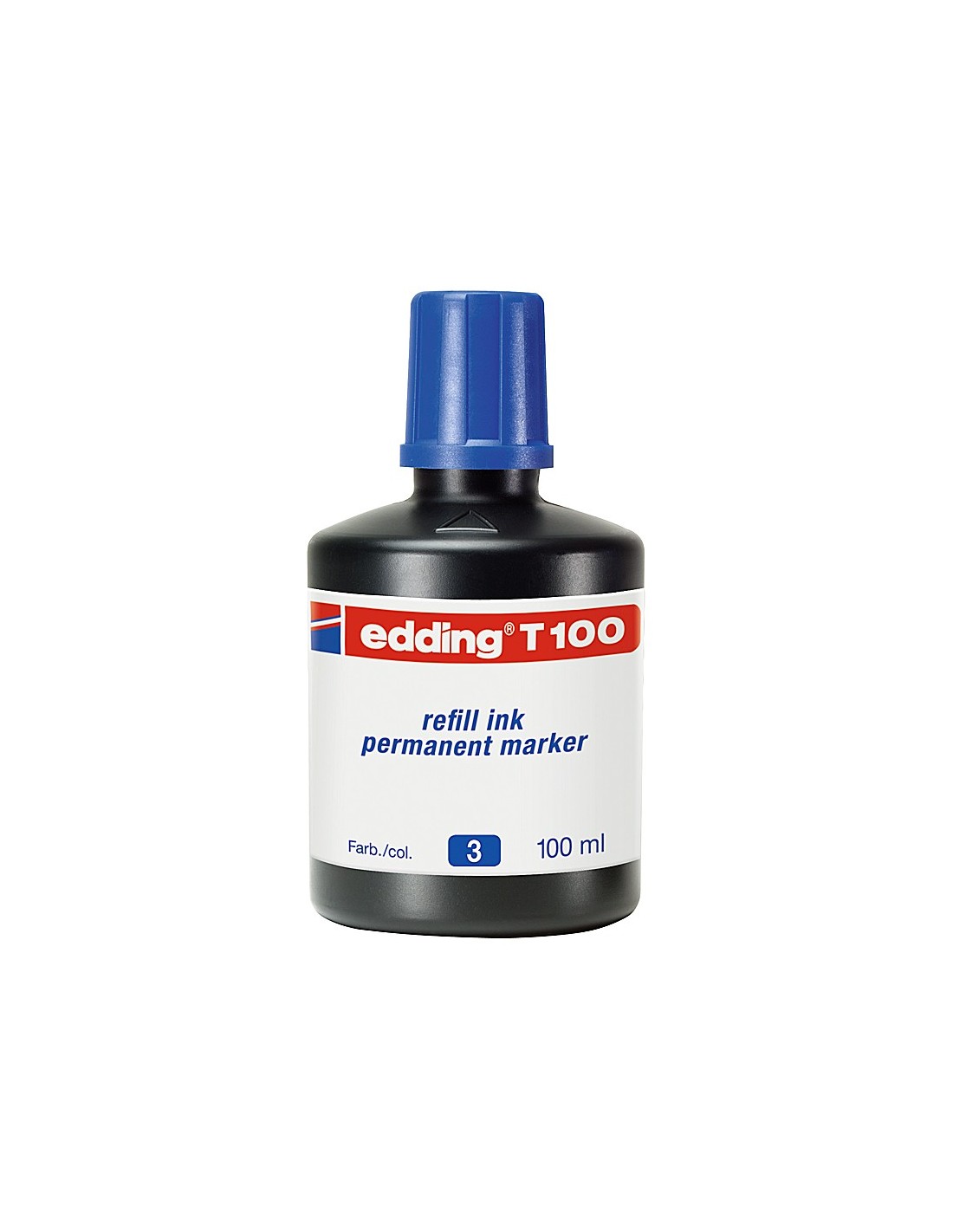 Tinta permanente casi inodora. Sirve para rellenar todo tipo de marcadores Edding recargables. El frasco de 100 ml.