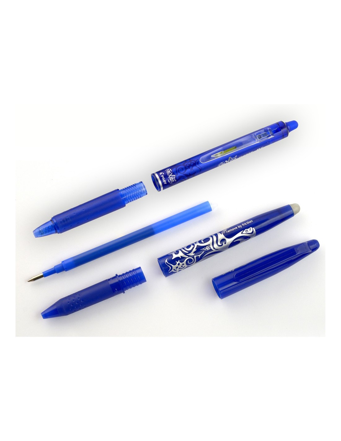Recambio para bolígrafos Pilot Frixion Ball Clicker. Tres colores disponibles: azul, negro y rojo. Punta de 0,7 mm. Trazo de 0,4 mm. El estuche de 3 recambios.