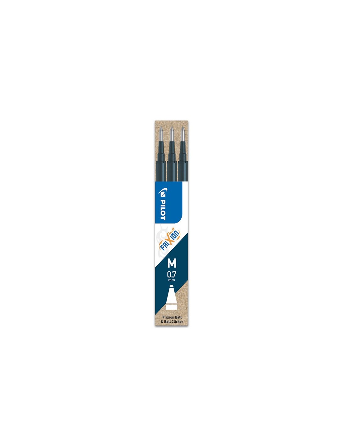 Recambio para bolígrafos Pilot Frixion Ball Clicker. Tres colores disponibles: azul, negro y rojo. Punta de 0,7 mm. Trazo de 0,4 mm. El estuche de 3 recambios.