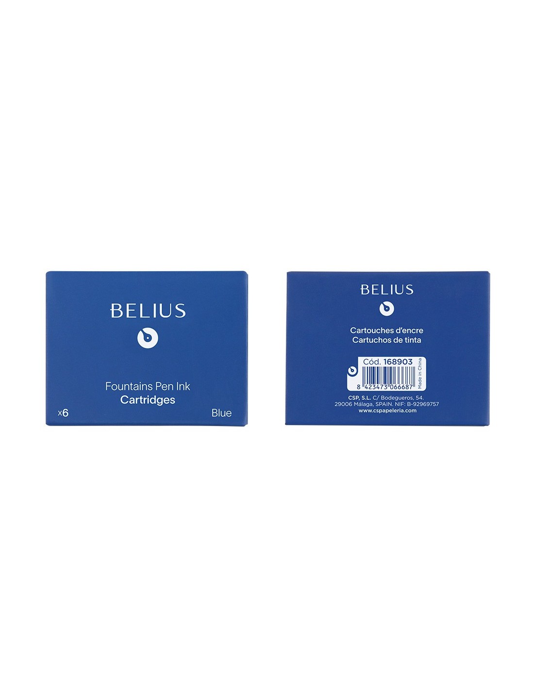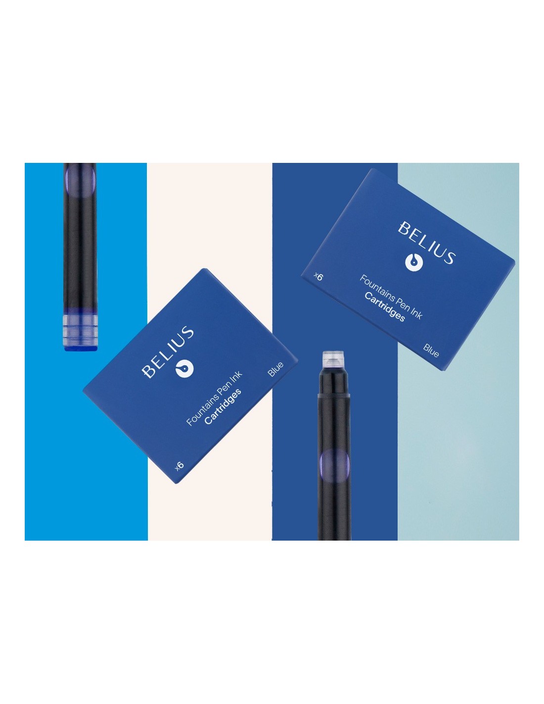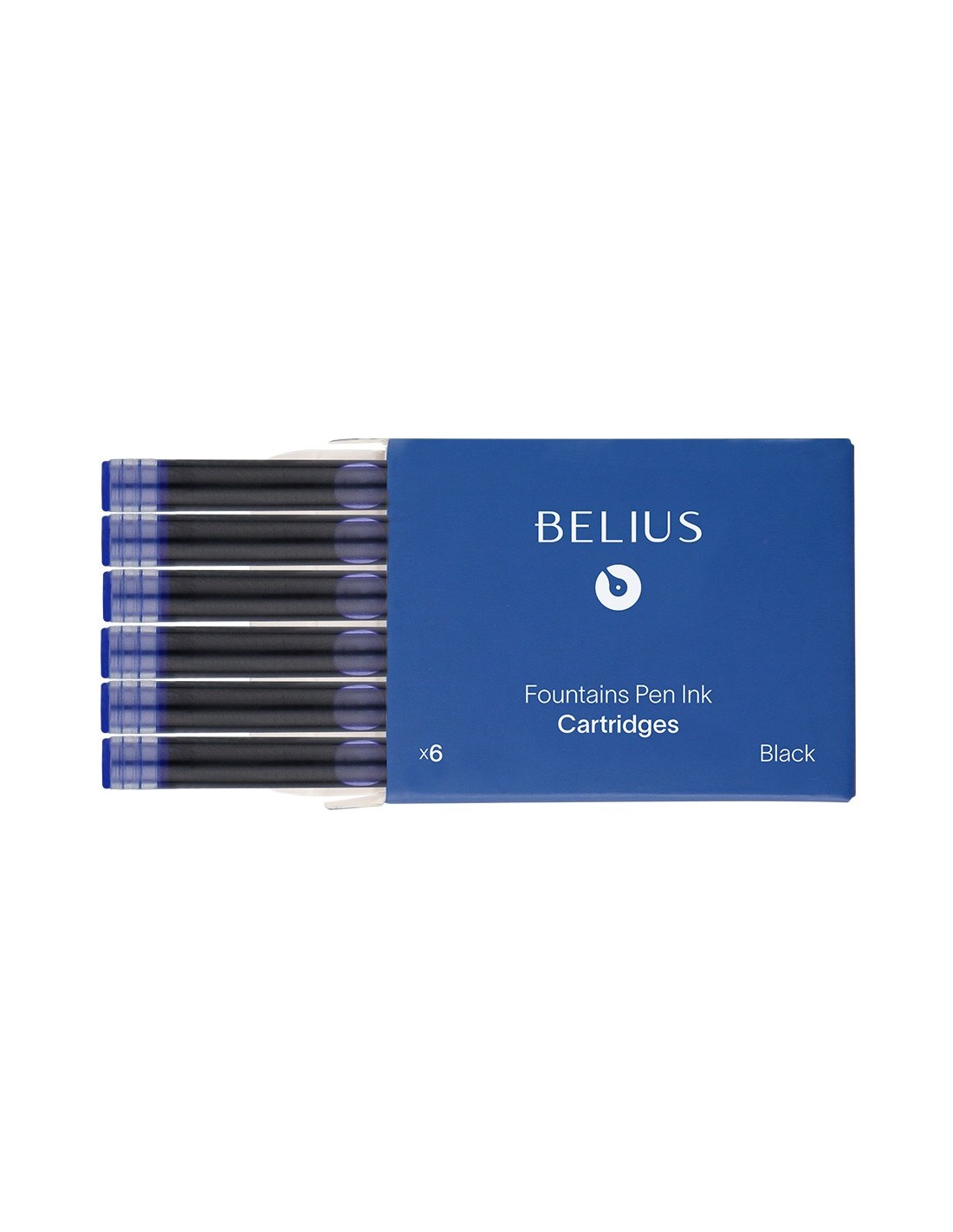 Cartuchos de tinta para plumas Belius. Color azul. Caja de 6 unidades. Tinta de calidad Made in Germany. Formato estándar y de uso universal. Diámetro de la apertura de 2,6 mm. Made in Germany. Tinta de calidad elaborada en Alemania.