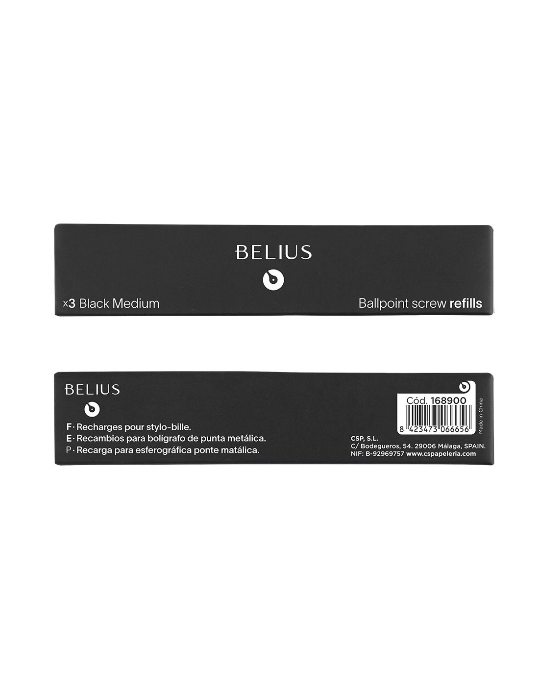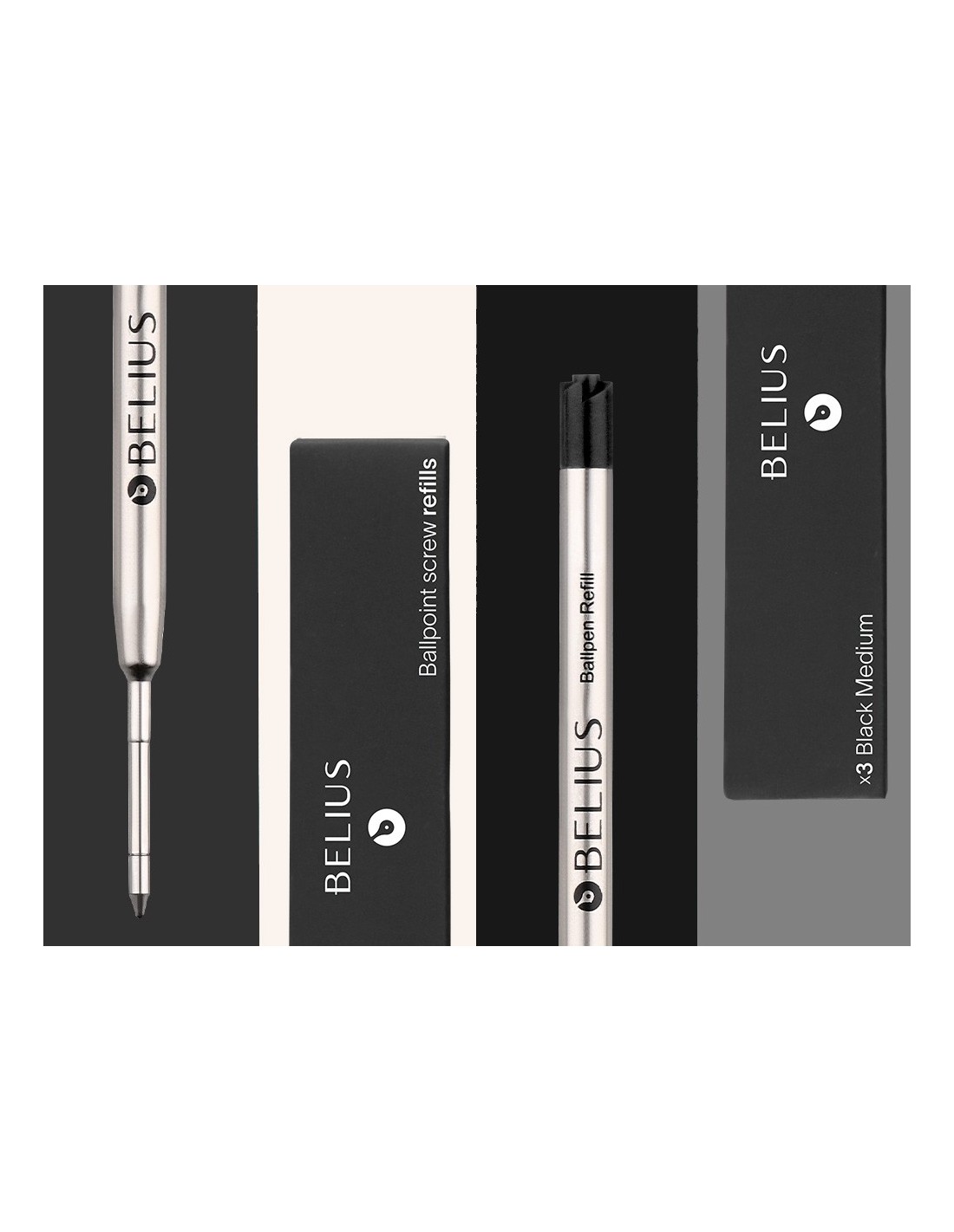 Recambio de bolígrafo Belius tamaño M. Color negro. Punta media de 0,8 mm para una escritura suave. Caja de 3 unidades. Made in Germany. Tinta de calidad elaborada en Alemania.