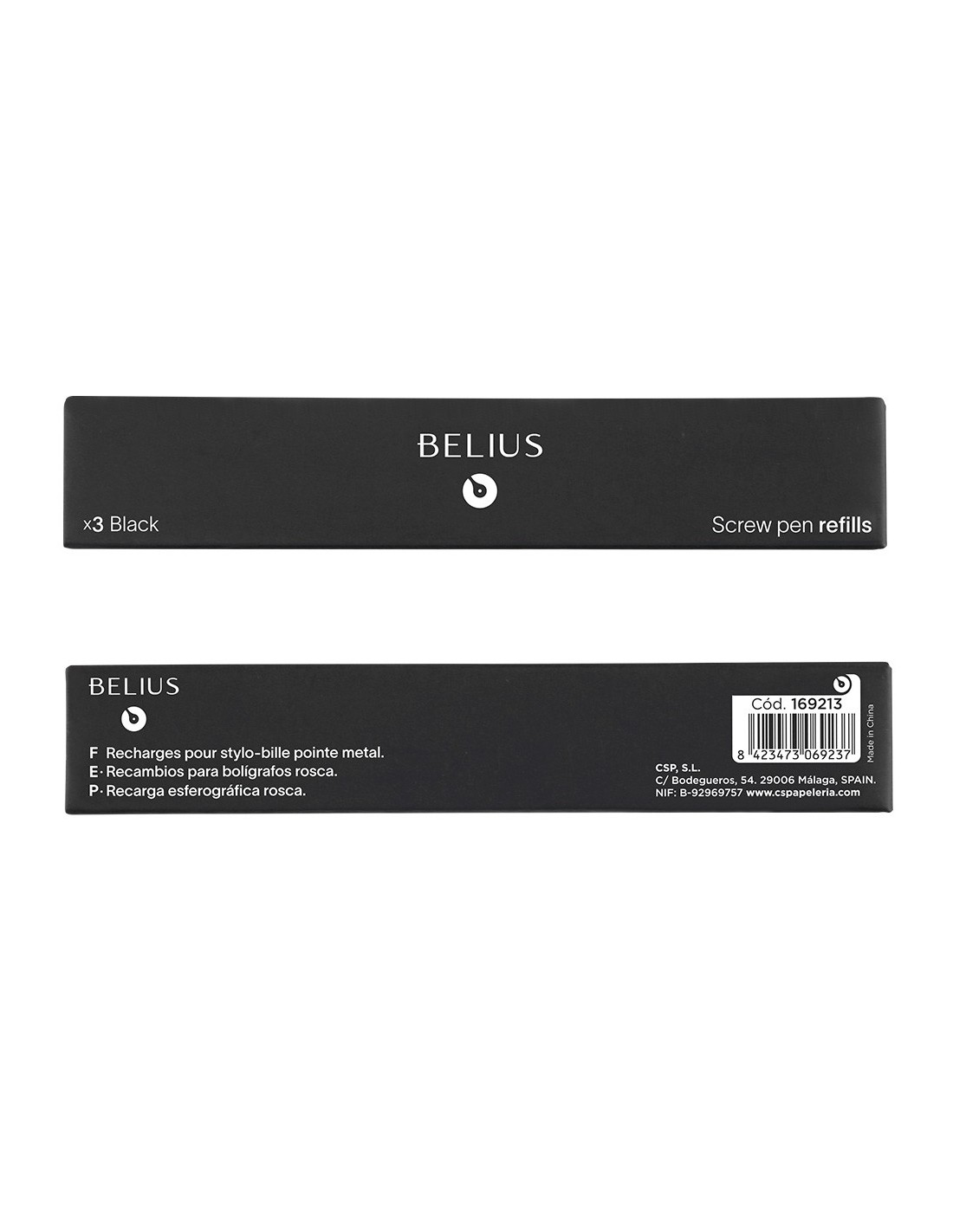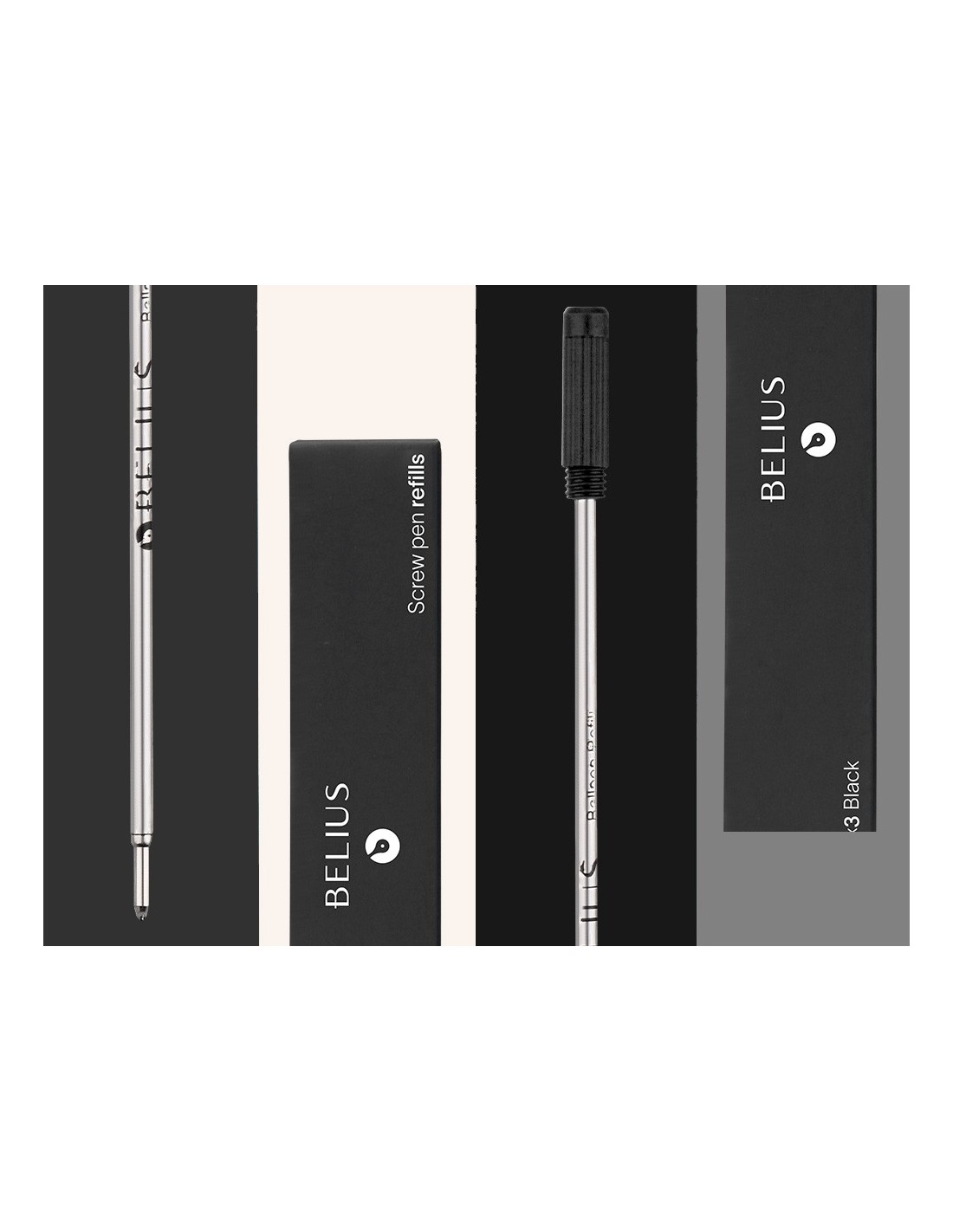 Recambio de bolígrafo de rosca Belius tamaño M. Color negro. Punta media de 1 mm para una escritura suave. Caja de 3 unidades. Made in Germany. Tinta de calidad elaborada en Alemania.