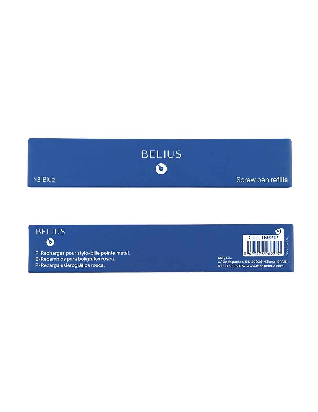 Recambio de bolígrafo de rosca Belius tamaño M. Color azul. Punta media de 1 mm para una escritura suave. Caja de 3 unidades. Made in Germany. Tinta de calidad elaborada en Alemania.