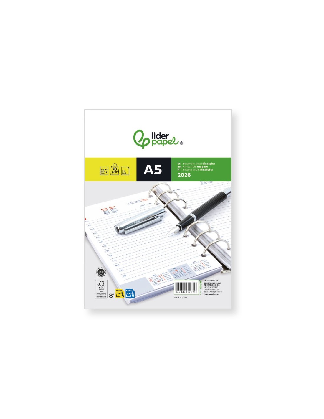 RECAMBIO AGENDAAN. 148X205MM A5 2026 DIA PAGINA PAPEL 70GR.FSC