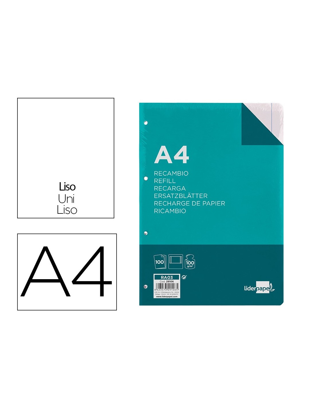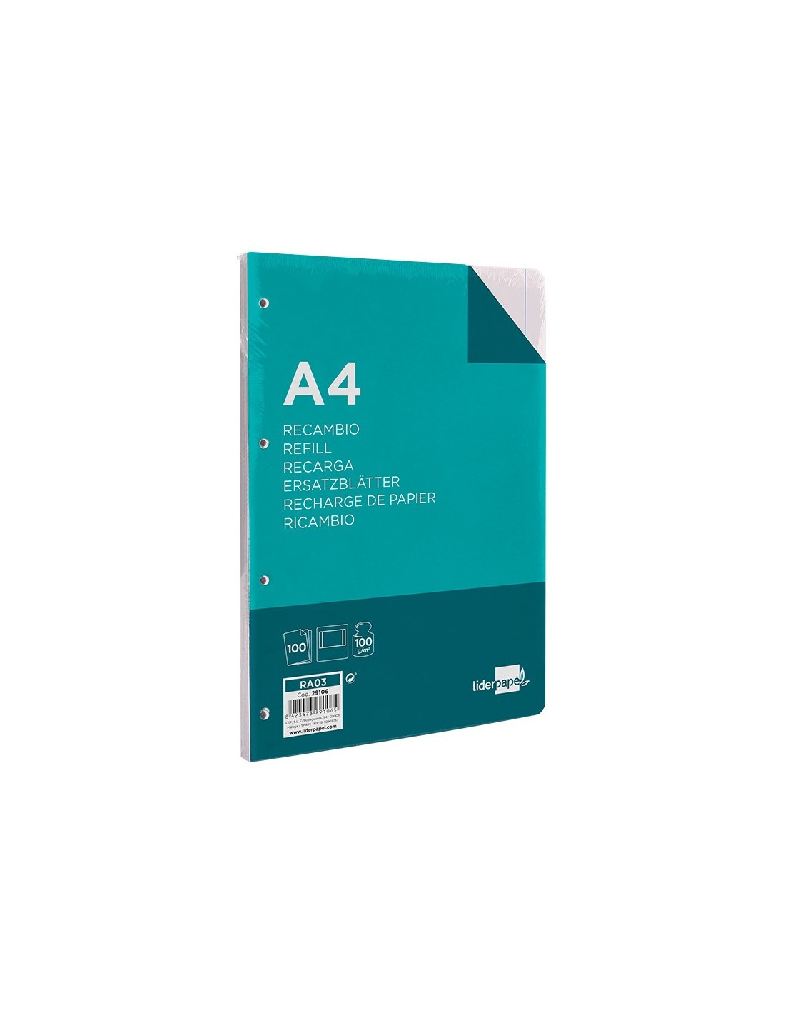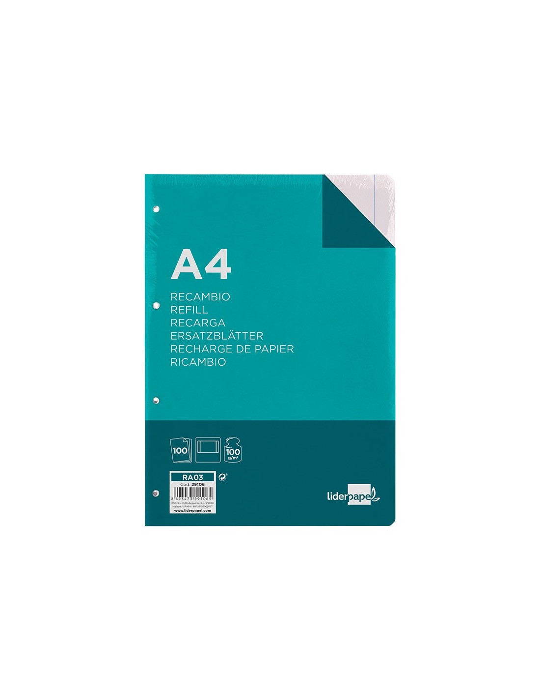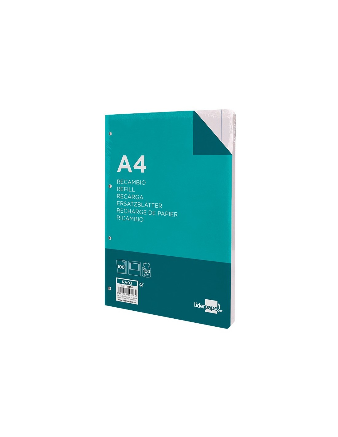 REC.DIN A4 100 H LISO 4 TAL.C/MARGEN PAPEL 100 GRAMOS