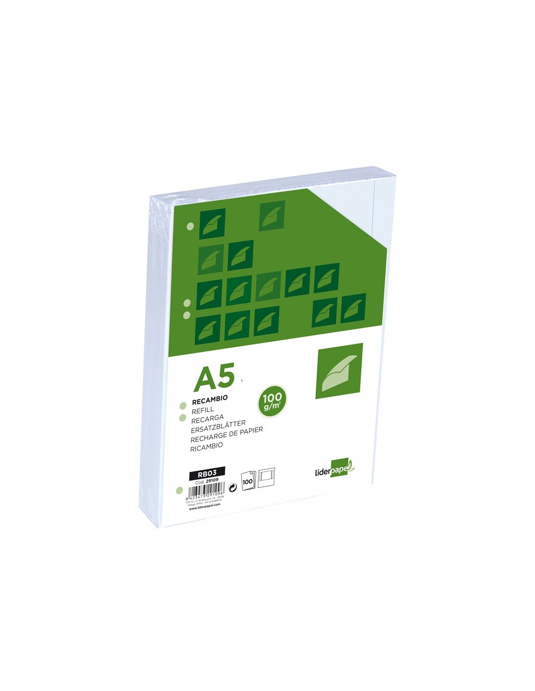 RECAMBIO LIDERPAPEL DIN-A5 100 H LISO 6 TALADROS MARGEN PAPEL 100 GR.