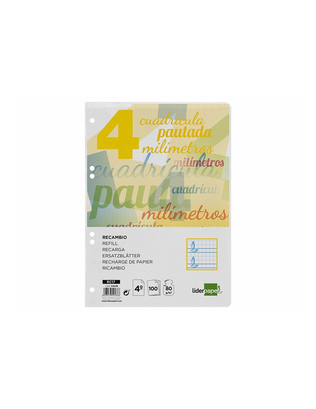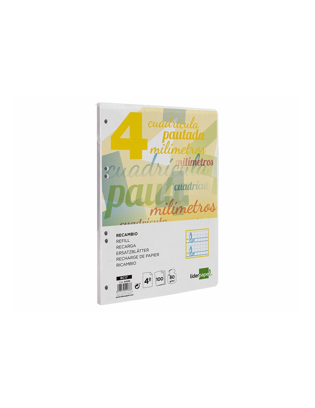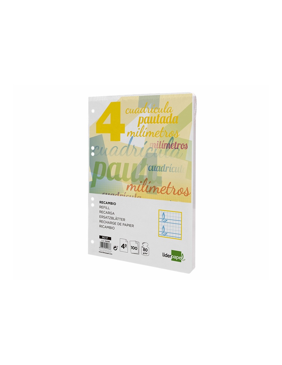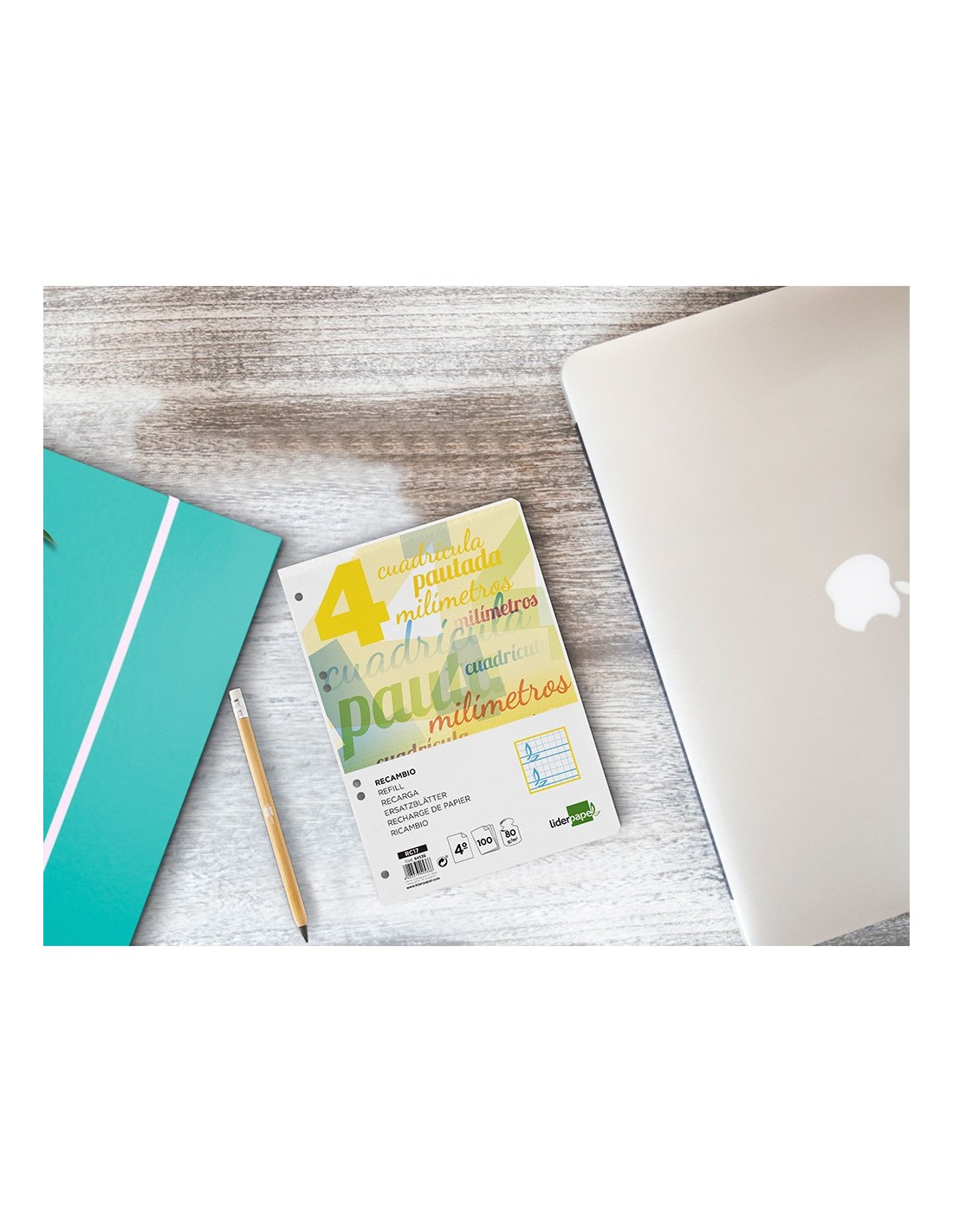 RECAMBIO LIDERPAPEL4º100 H CUADO PAUTADO 4 MM 6 TALADROS 70 G**