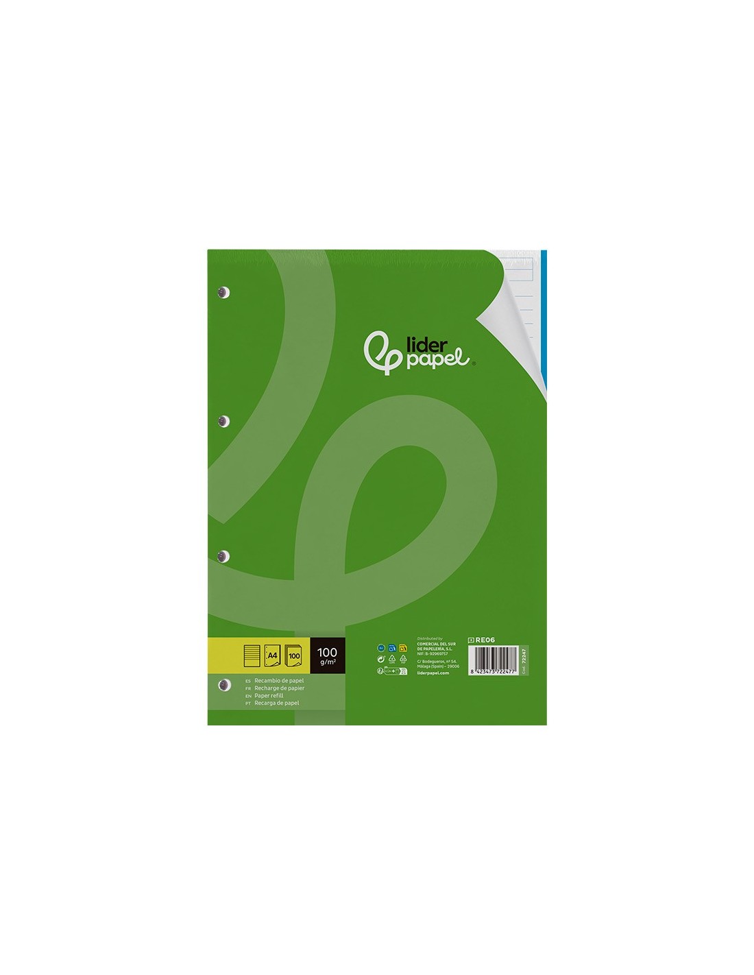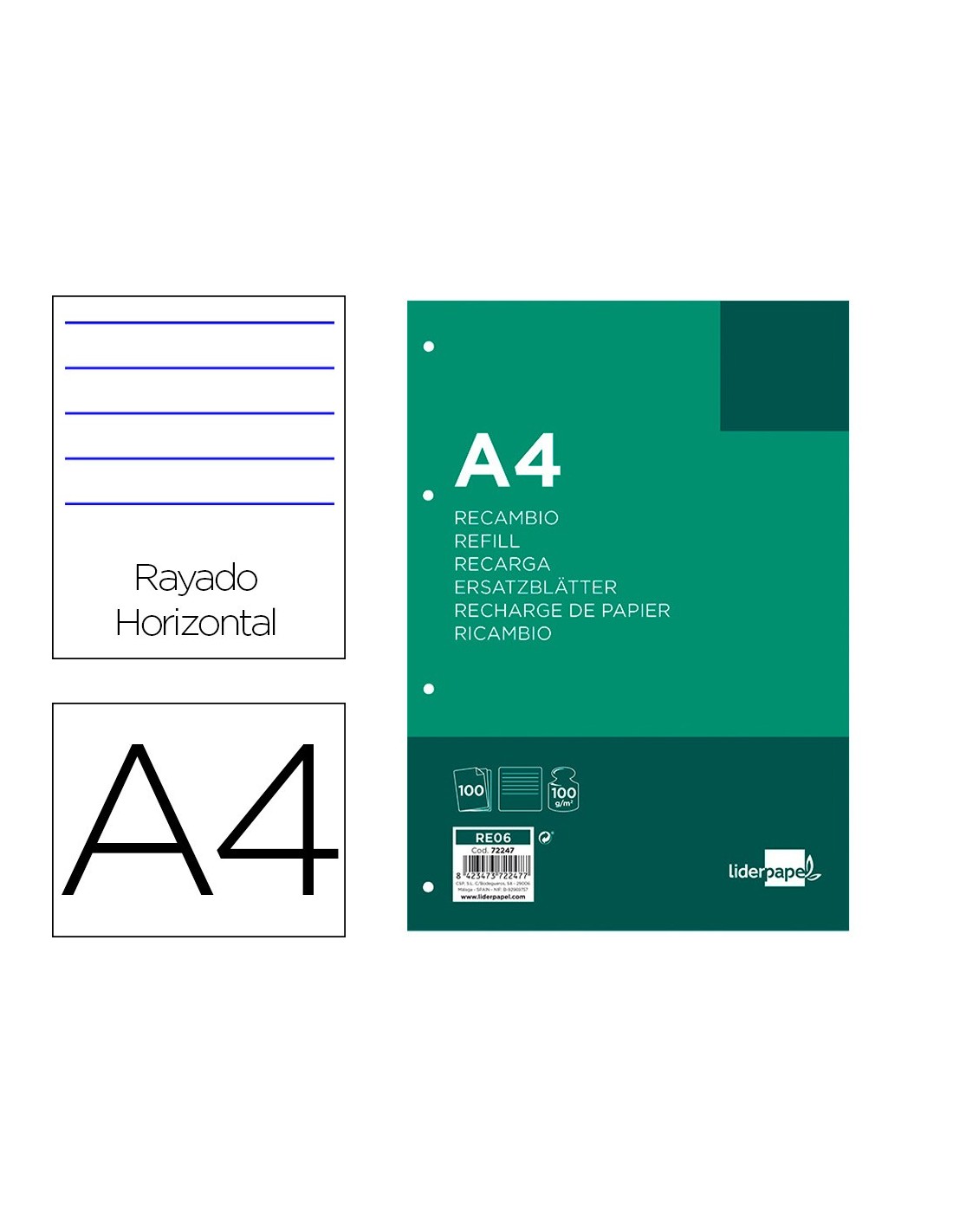 RECAMBIO LIDER.A4 100H.100G RAYADO HORIZONTAL 4A BANDAS 5 COL