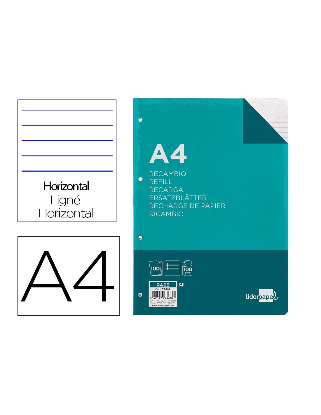 RECAMBIO A4 100H.100 G/M2 RAYADO HORIZONTAL MARGEN 4 TALADROS