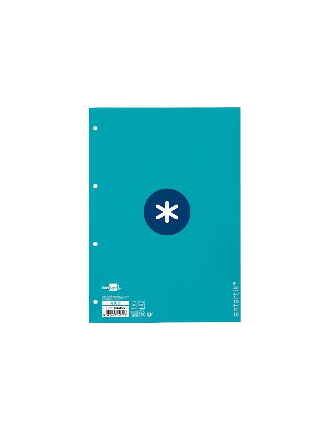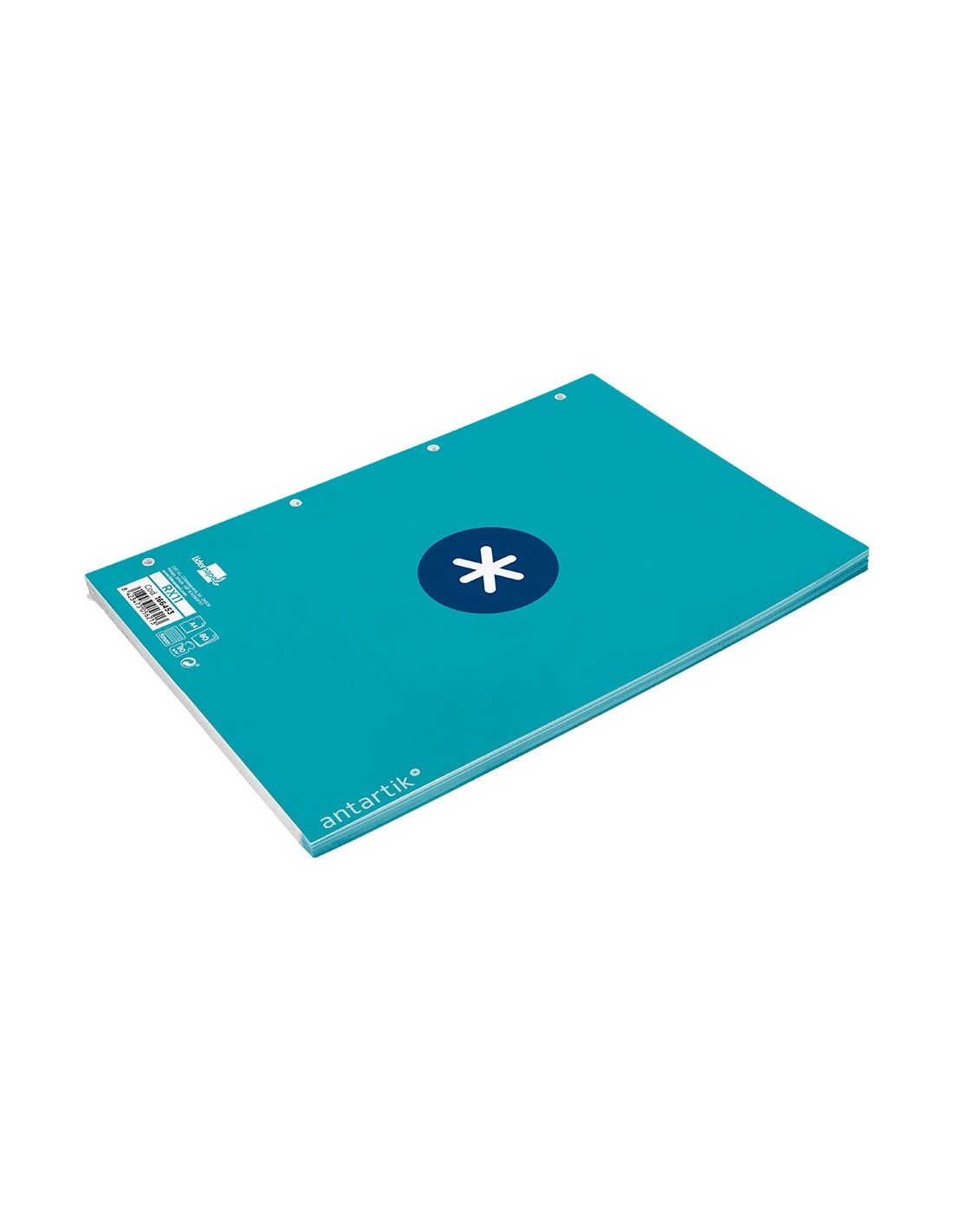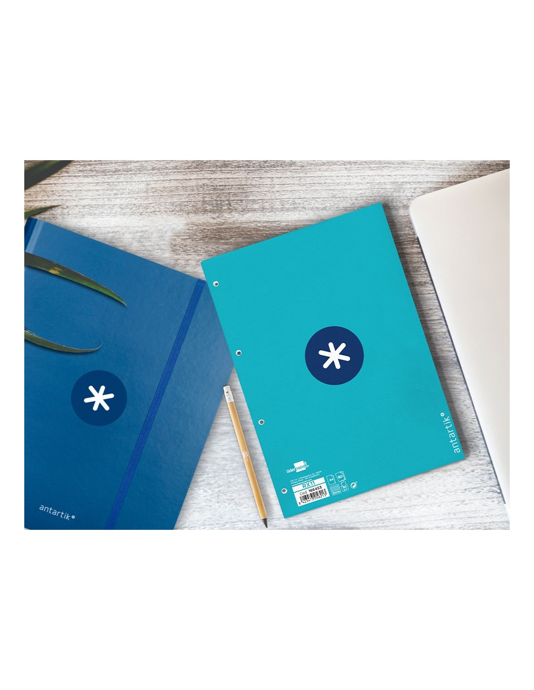 Recambio A4 Antartik. 80 hojas. Cuadro de 5 mm. 1 banda con 4 taladros. Elrecambio con exclusivo diseño, características de alta gama, un recambio sin precedentes que se distingue por la suavidad y blancura de su papel. Papel extrablanco de 90 g/m2, ultrasuave que hace la escritura mucho más fluida. La tinta no traspasa. Color turquesa. Ideal como complemento para tucarpeta Antartik. Color turquesa.