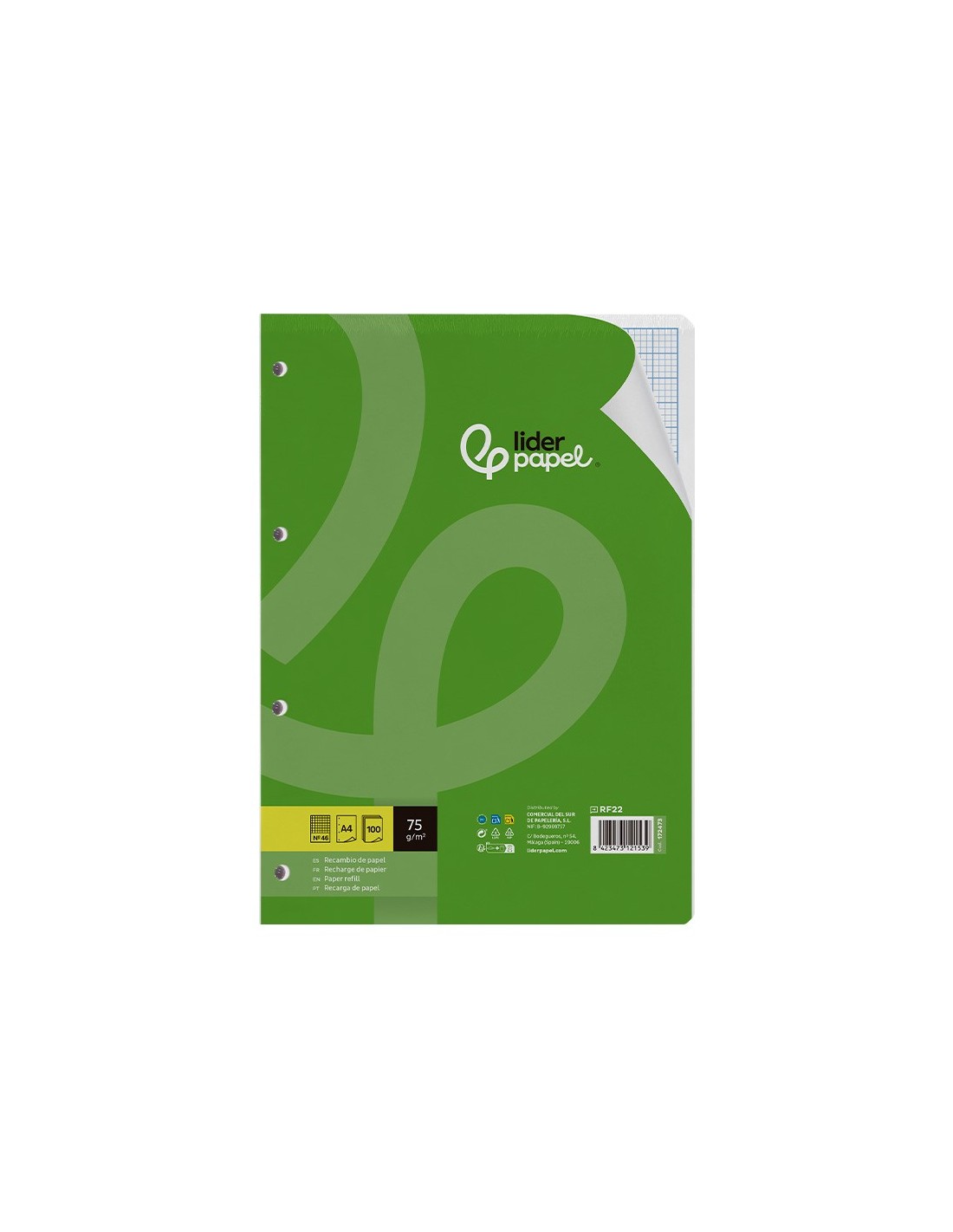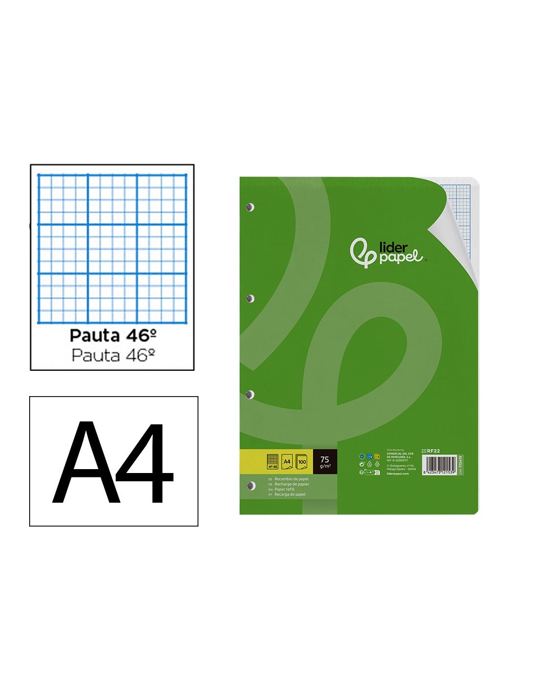 El recambio Liderpapel Din A4 retractilado de 100 hojas sueltas es una opción de gran calidad y funcionalidad, ideal para estudiantes, profesionalesy cualquier persona que requiera un soporte confiable para sus apuntes y documentos. Fabricado con papel de 75 gr de alta calidad, cuenta con márgenes que proporcionan un espacio adicional para anotaciones. Su diseño con4 taladros lo hace compatible con archivadores y carpetas estándar, permi tiendo una organización sencilla y práctica. Perfecto para quienes buscan eficiencia y calidad en su material de oficina o estudio.