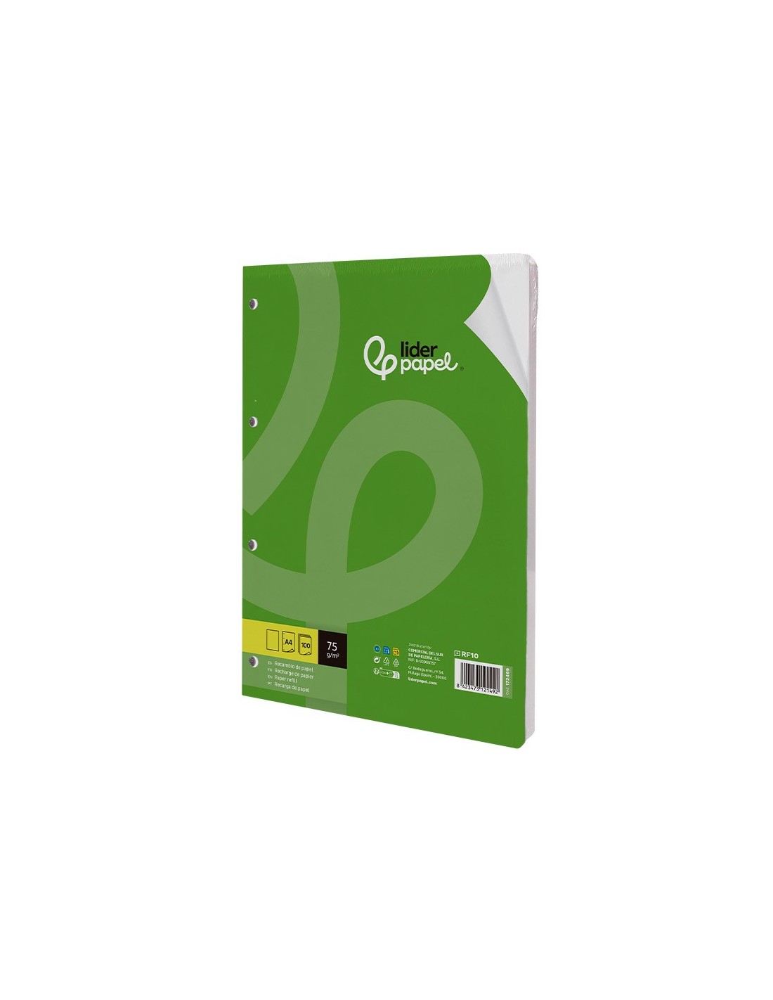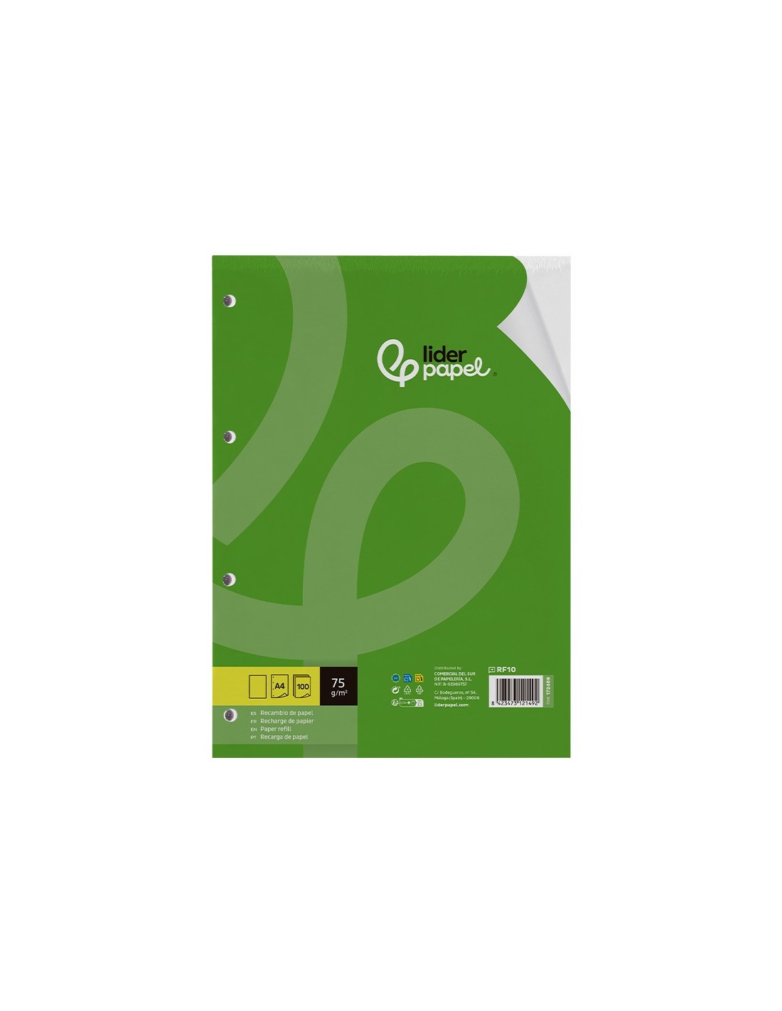 El recambio Liderpapel Din A4 retractilado de 100 hojas sueltas es una opción de gran calidad y funcionalidad, ideal para estudiantes, profesionalesy cualquier persona que requiera un soporte confiable para sus apuntes y documentos. Fabricado con papel de 75 gr de alta calidad, cuenta con márgenes que proporcionan un espacio adicional para anotaciones. Su diseño con4 taladros lo hace compatible con archivadores y carpetas estándar, permi tiendo una organización sencilla y práctica. Perfecto para quienes buscan eficiencia y calidad en su material de oficina o estudio.