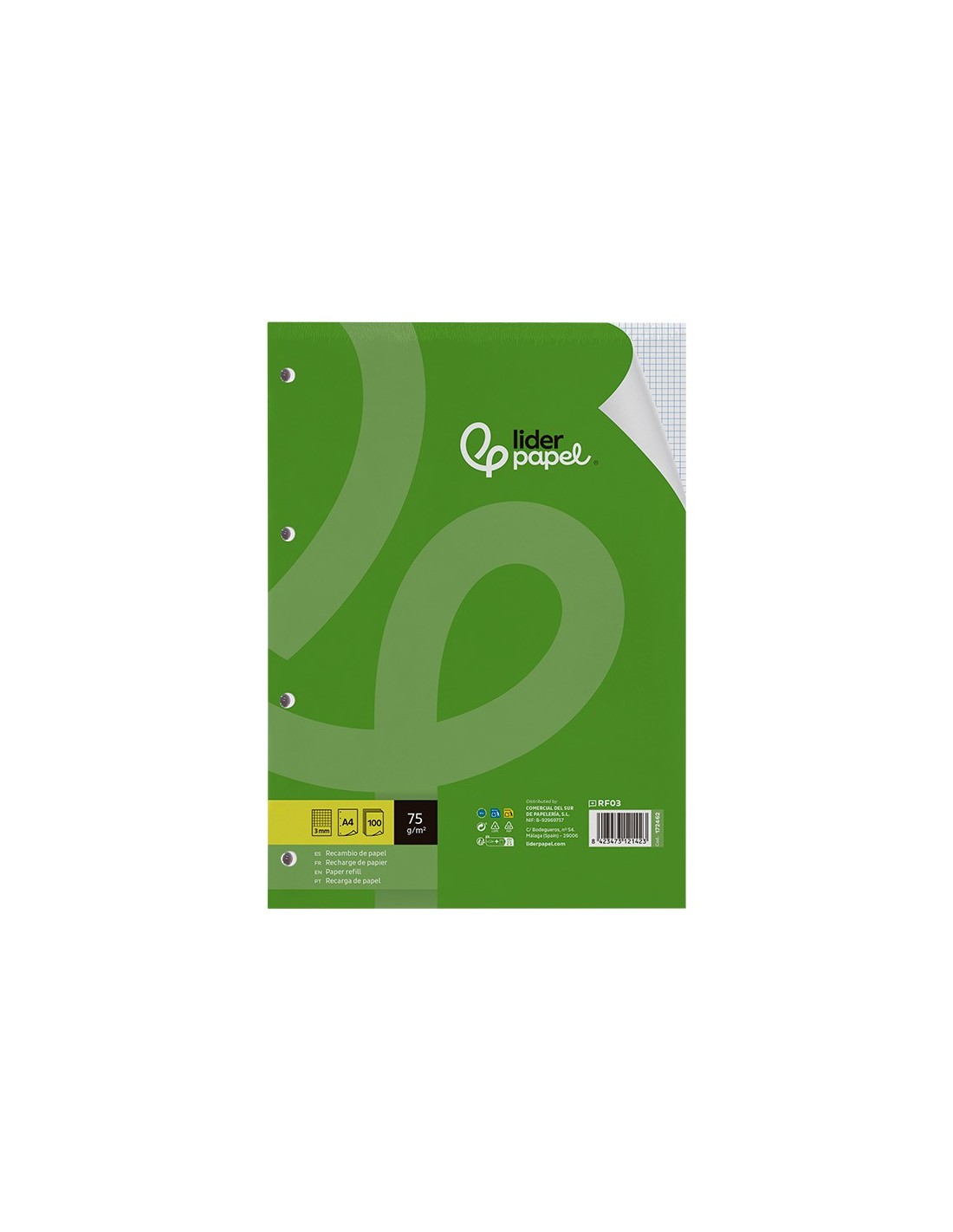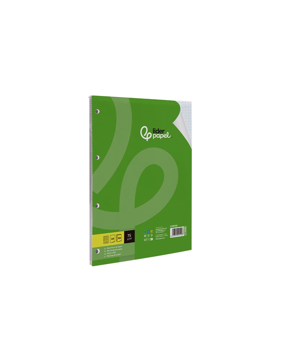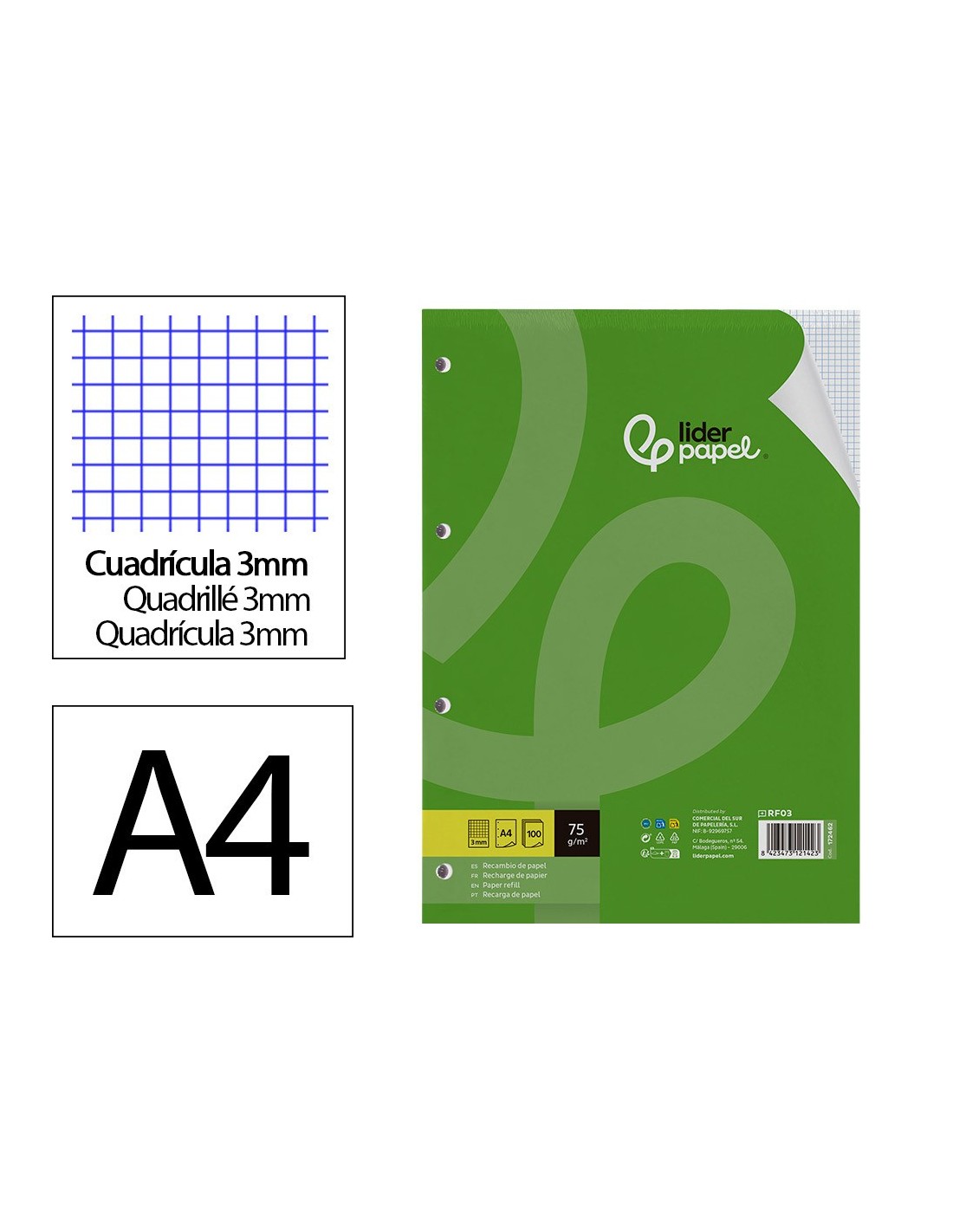 El recambio Liderpapel Din A4 retractilado de 100 hojas sueltas es una opción de gran calidad y funcionalidad, ideal para estudiantes, profesionalesy cualquier persona que requiera un soporte confiable para sus apuntes y documentos. Fabricado con papel de 75 gr de alta calidad, cuenta con márgenes que proporcionan un espacio adicional para anotaciones. Su diseño con4 taladros lo hace compatible con archivadores y carpetas estándar, permi tiendo una organización sencilla y práctica. Perfecto para quienes buscan eficiencia y calidad en su material de oficina o estudio.
