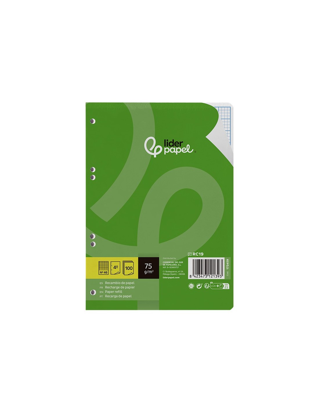 RECAMBIO LIDERPAPEL4º100 H CUADRICULA Nº46 6 TALADROS 60 GR