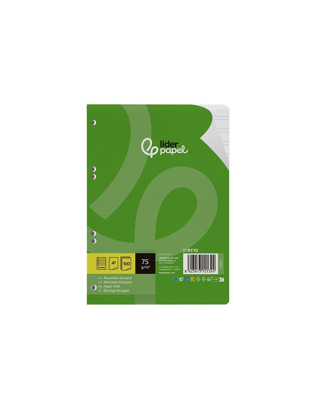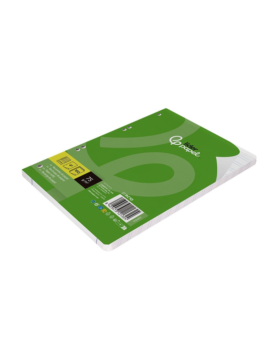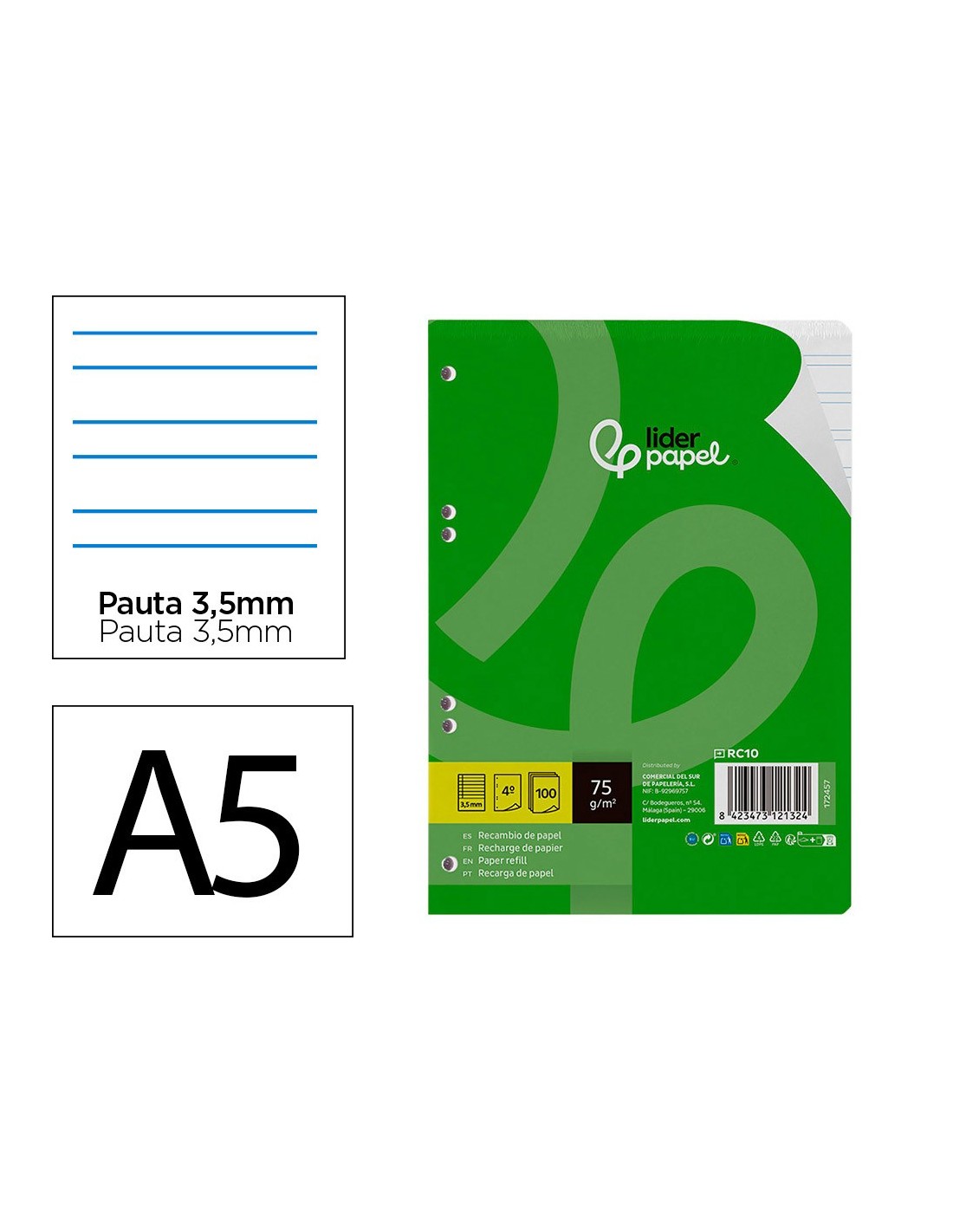 Recambio tamaño A5 (155x212mm) con papel de 75gr de alta calidad, retractilado de 100 hojas sueltas con 6 taladros, compatibles con carpetas de anillas. Archiva tus apuntes fácilmente y transporta solo las hojas que necesites.