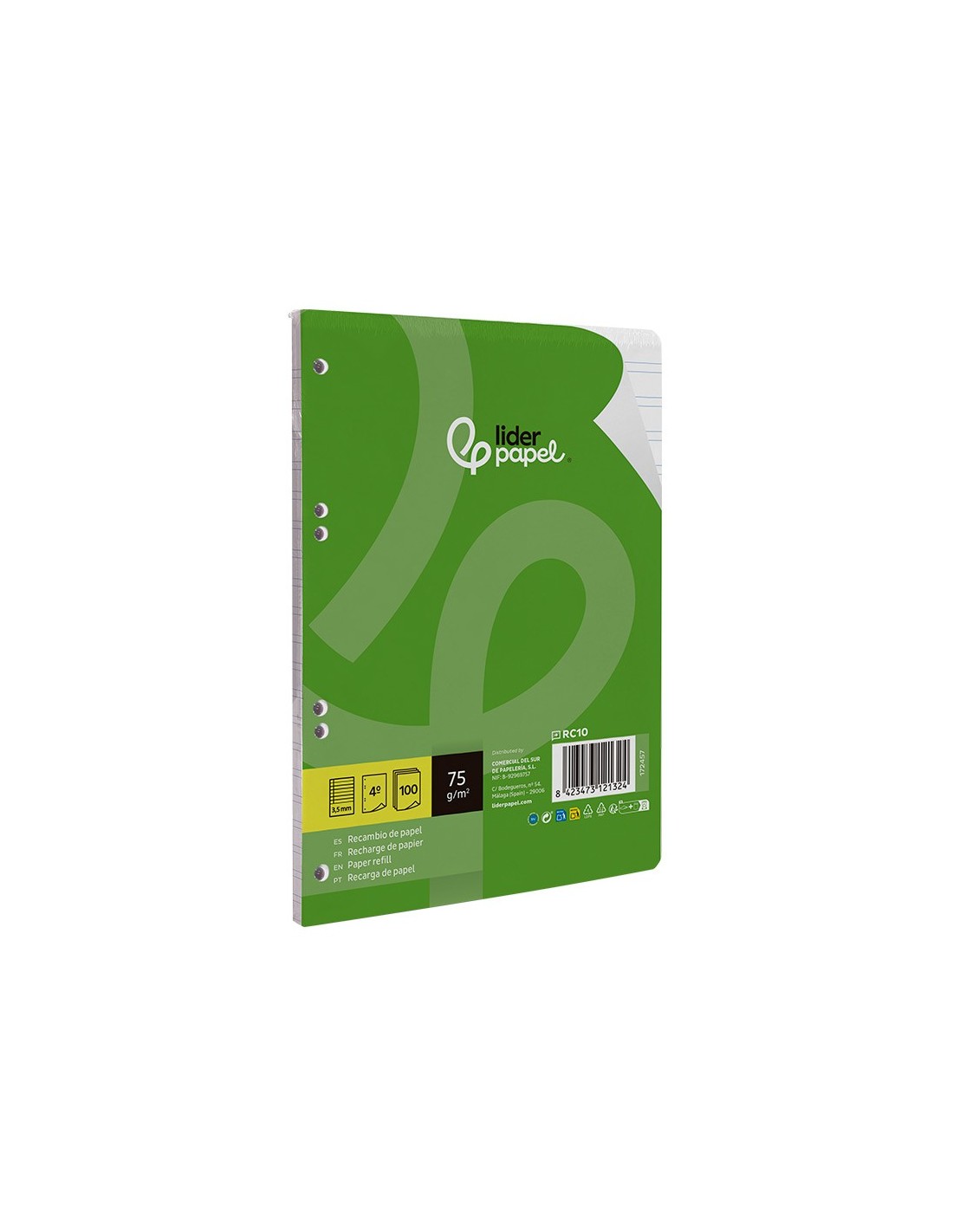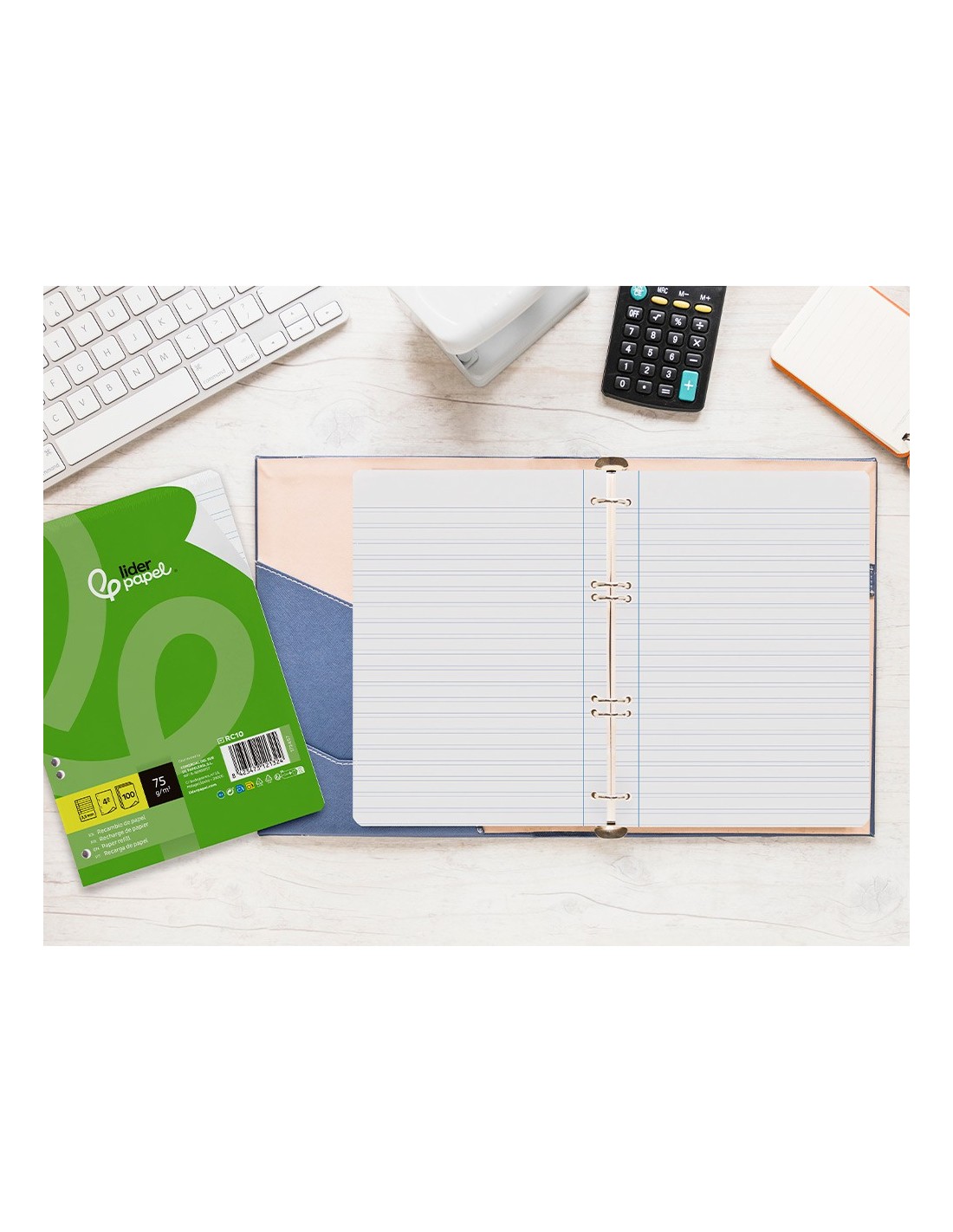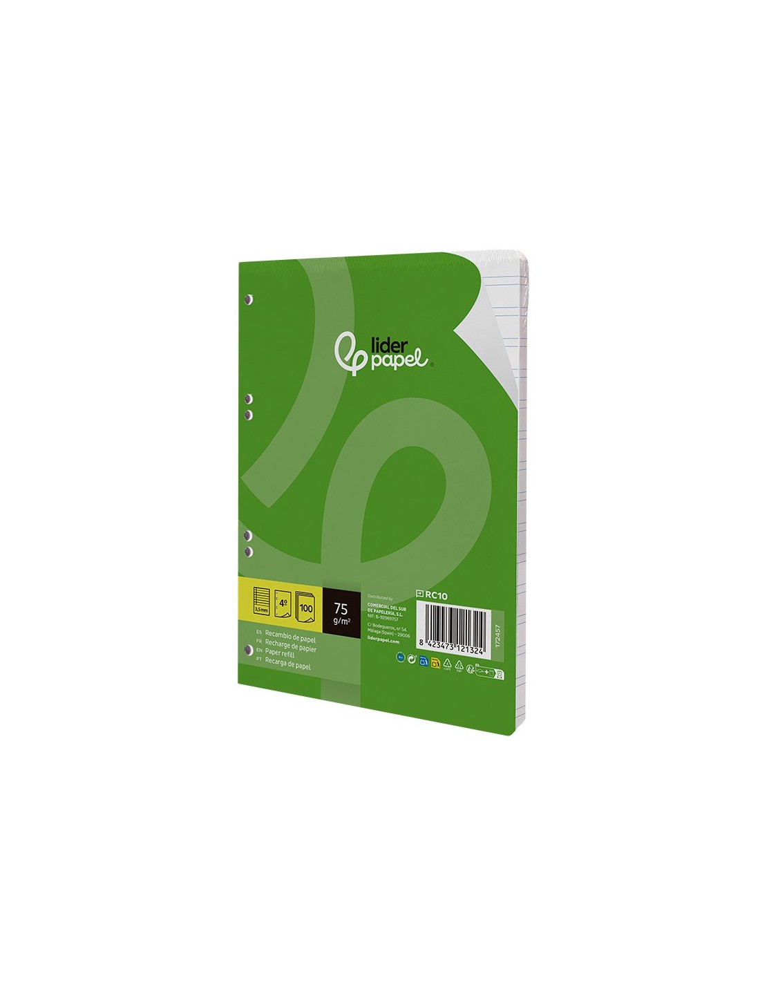 Recambio tamaño A5 (155x212mm) con papel de 75gr de alta calidad, retractilado de 100 hojas sueltas con 6 taladros, compatibles con carpetas de anillas. Archiva tus apuntes fácilmente y transporta solo las hojas que necesites.