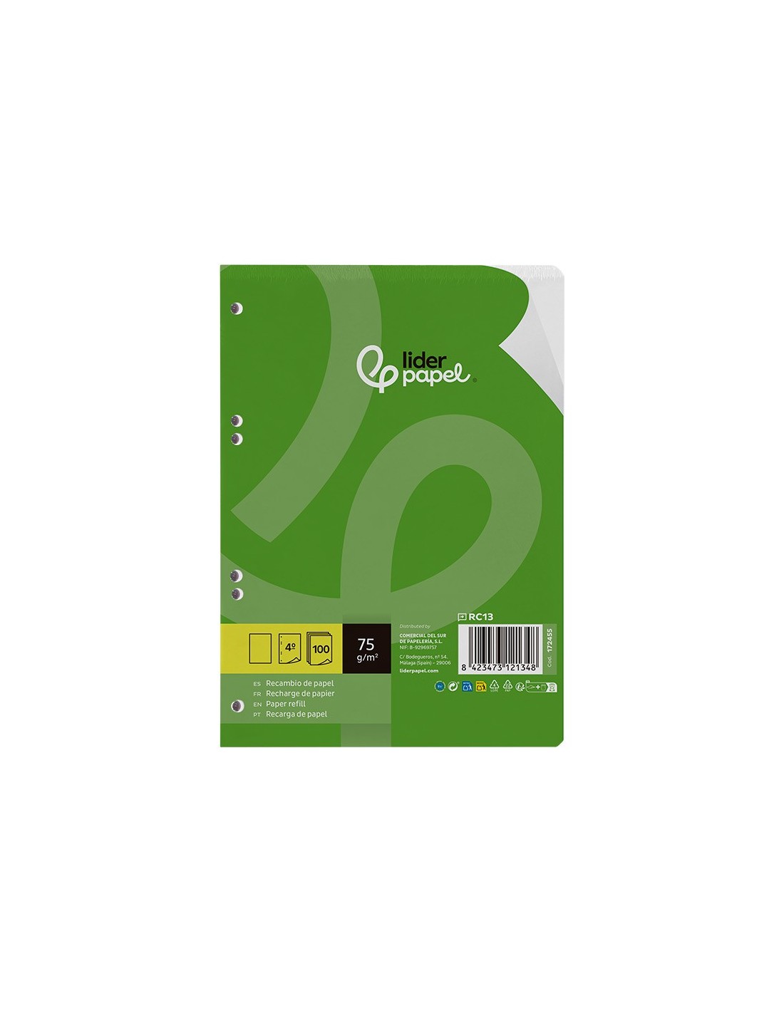 Recambio tamaño A5 (155x212mm) con papel de 75gr de alta calidad, retractilado de 100 hojas sueltas con 6 taladros, compatibles con carpetas de anillas. Archiva tus apuntes fácilmente y transporta solo las hojas que necesites.