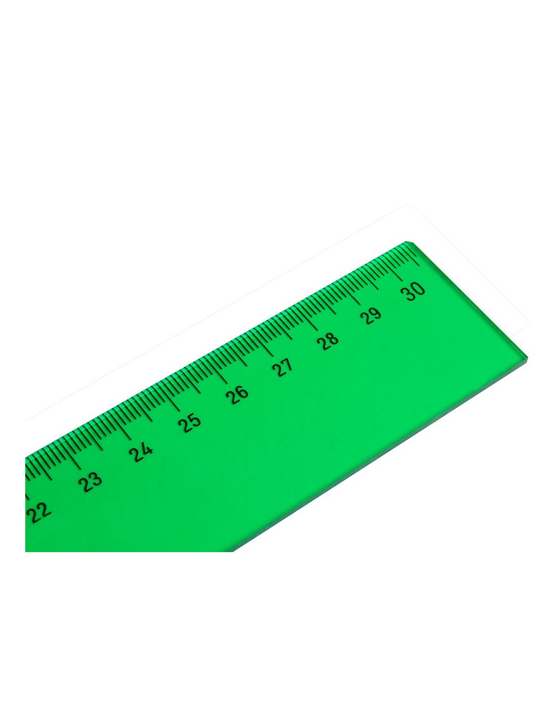 Regla de gran calidad para estudios y oficinas. Fabricada en acrílico verde, con cantos biselados a ambos lados y graduaciones grabadas a prueba de emborronamiento.