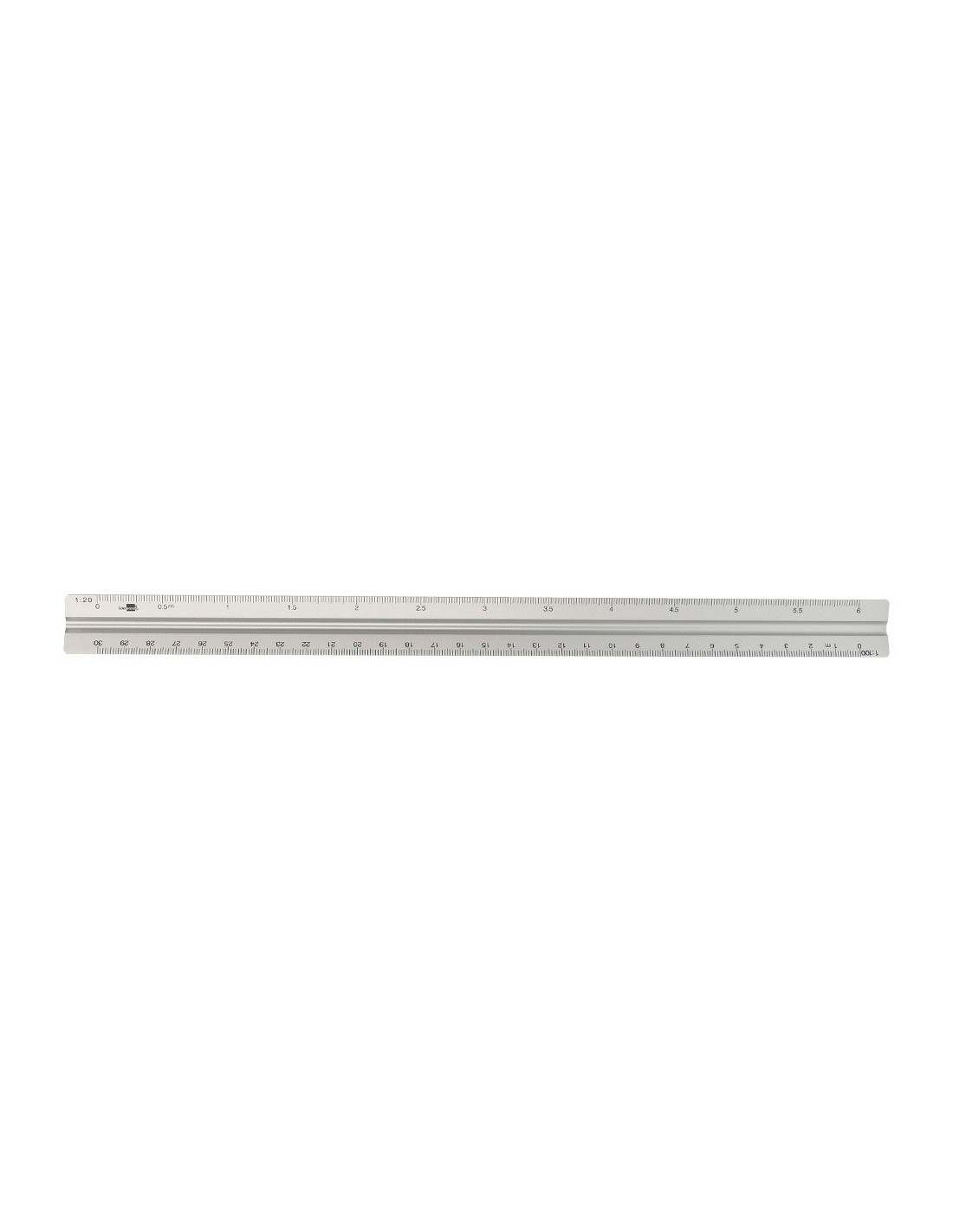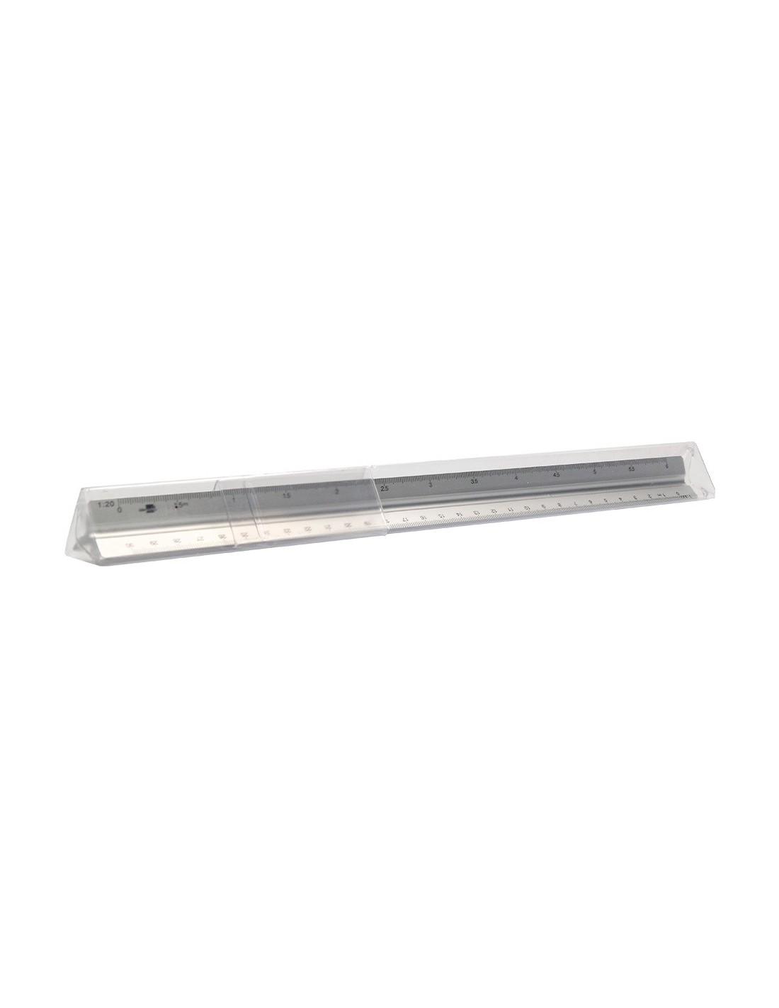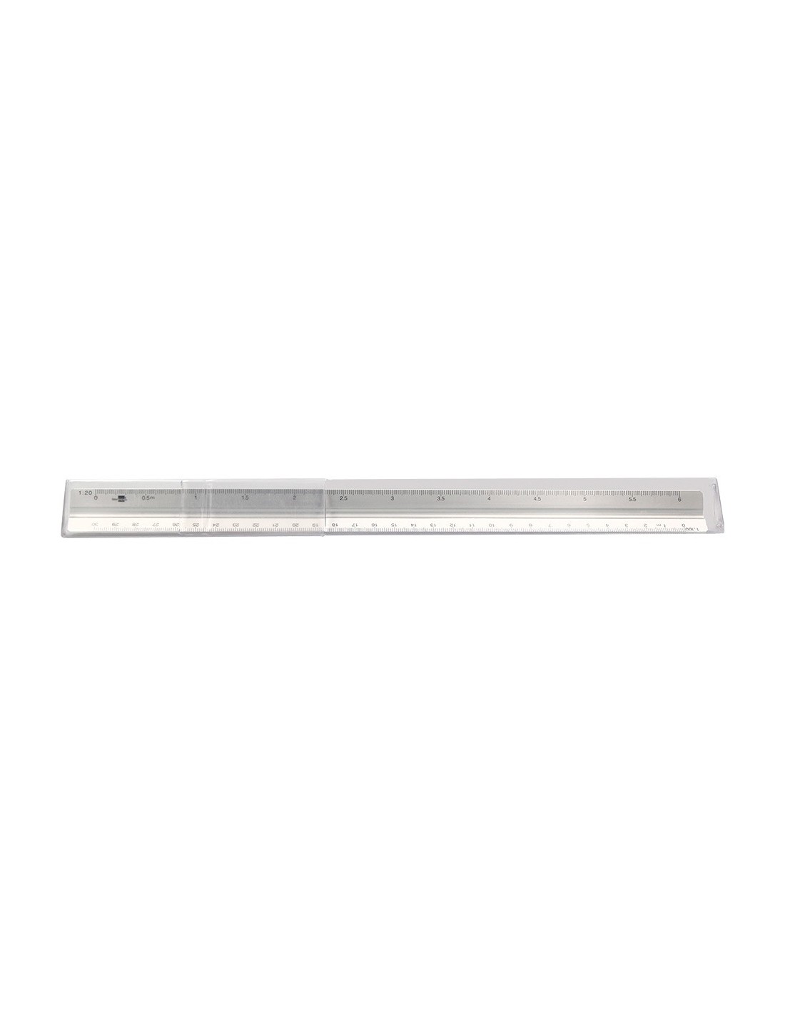 Escala fabricada en aluminio. Longitud: 30 cm. Escalas 1:20/1:25/1:50/1:75/1:100 y 1:150. Con funda de plástico.