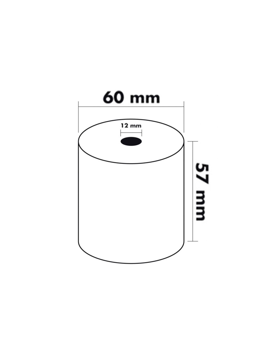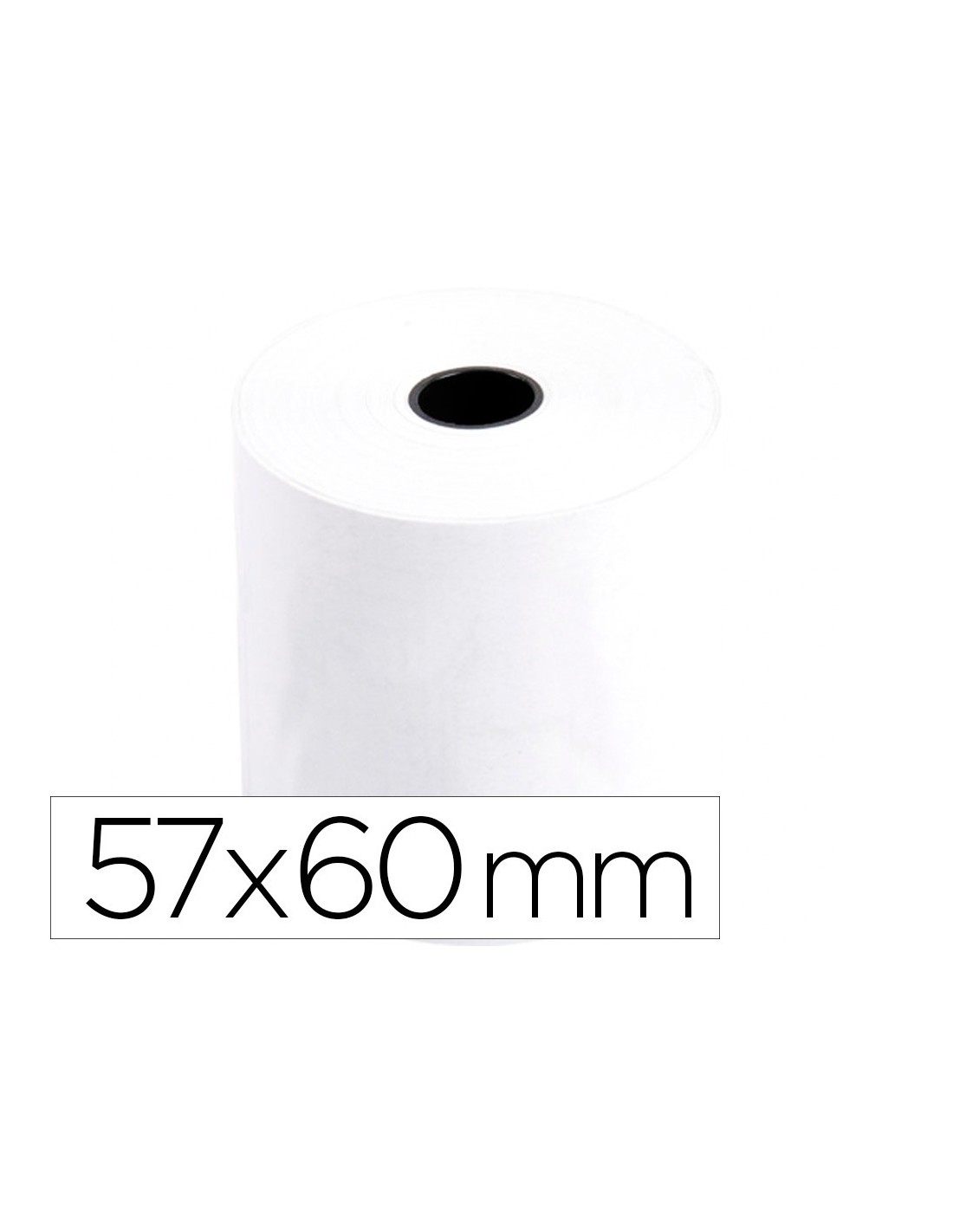 Rollos de papel para sumadoras, cajas registradoras, calculadoras impresoras, etc. Mandril 12 mm. Papel de 70 g/m². Medidas: 57 x 60 mm.