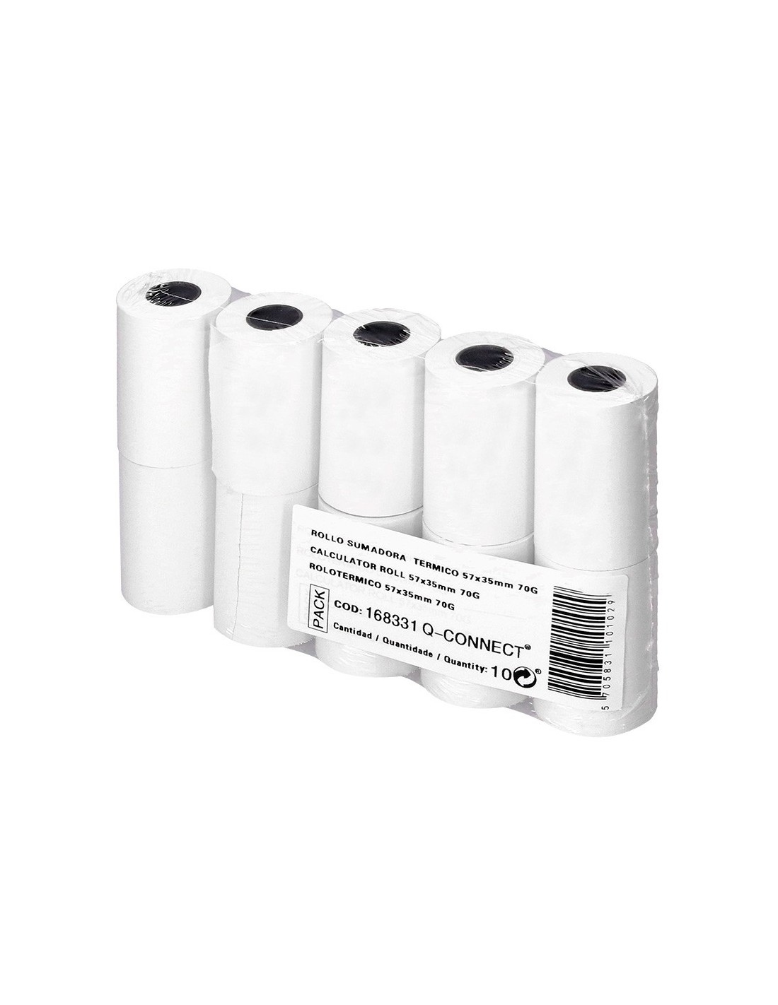 Rollos de papel para sumadoras, cajas registradoras, calculadoras impresoras, etc. Mandril 12 mm. Papel de 70 g/m². Medidas: 57 x 35 mm.