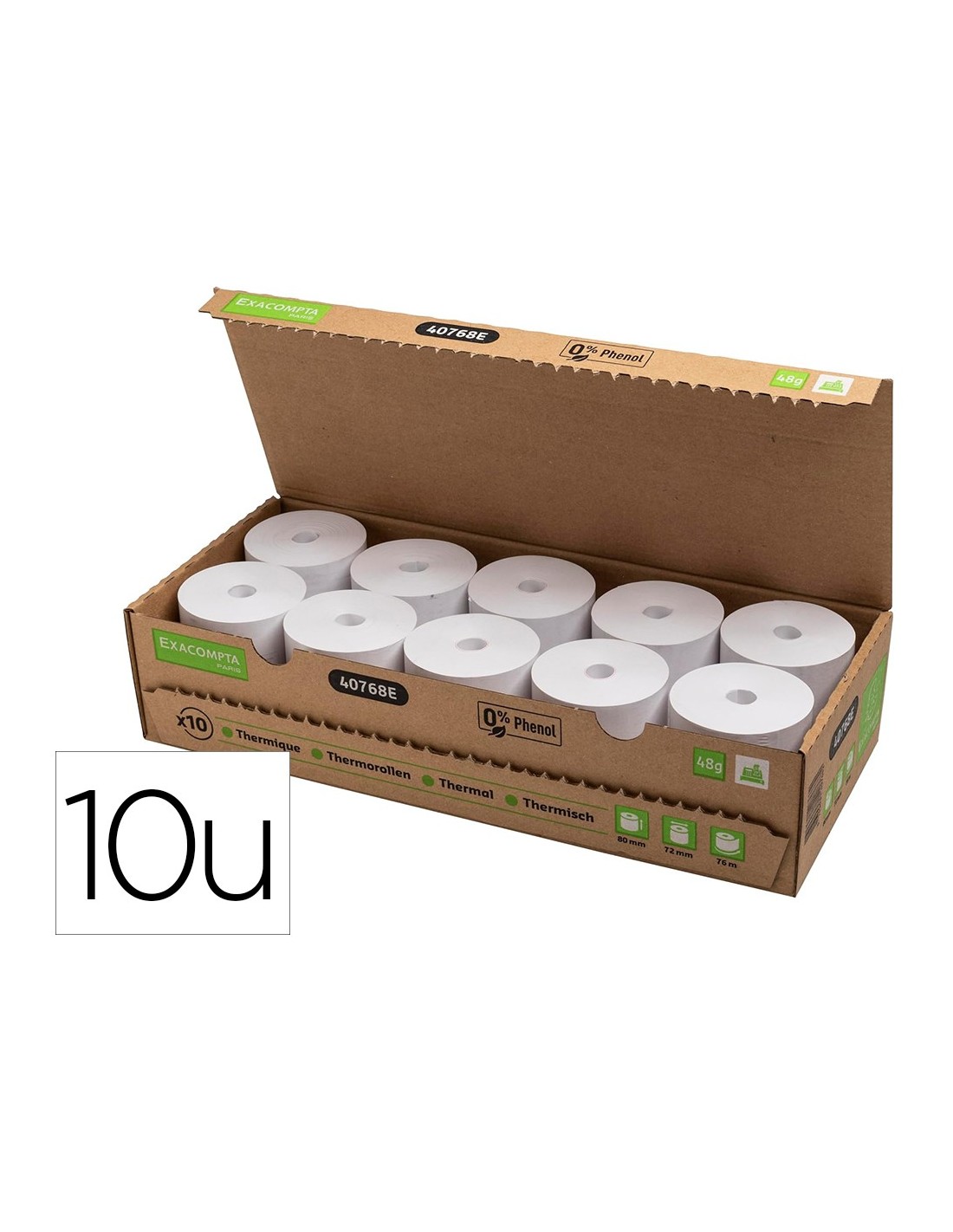 Rollo sumadora Exacompta térmico 80x80 mm. 48 gr. Sin Fenol. Sin Plástico.Sin mandril. Certificado FSC.