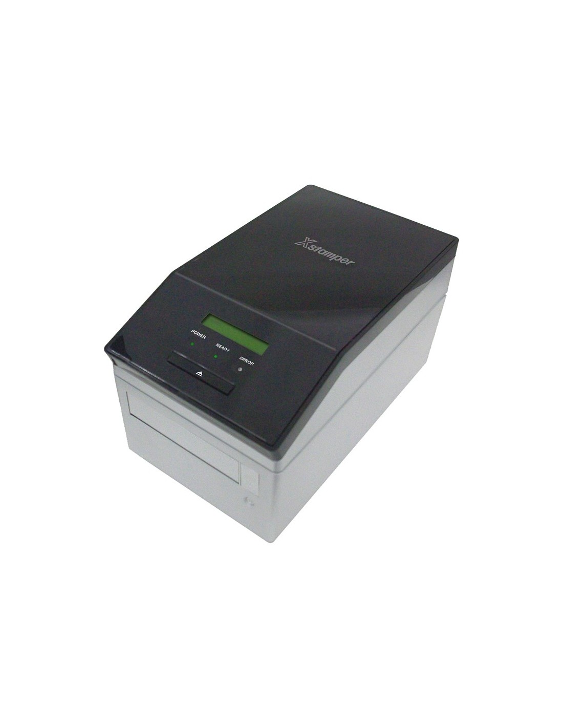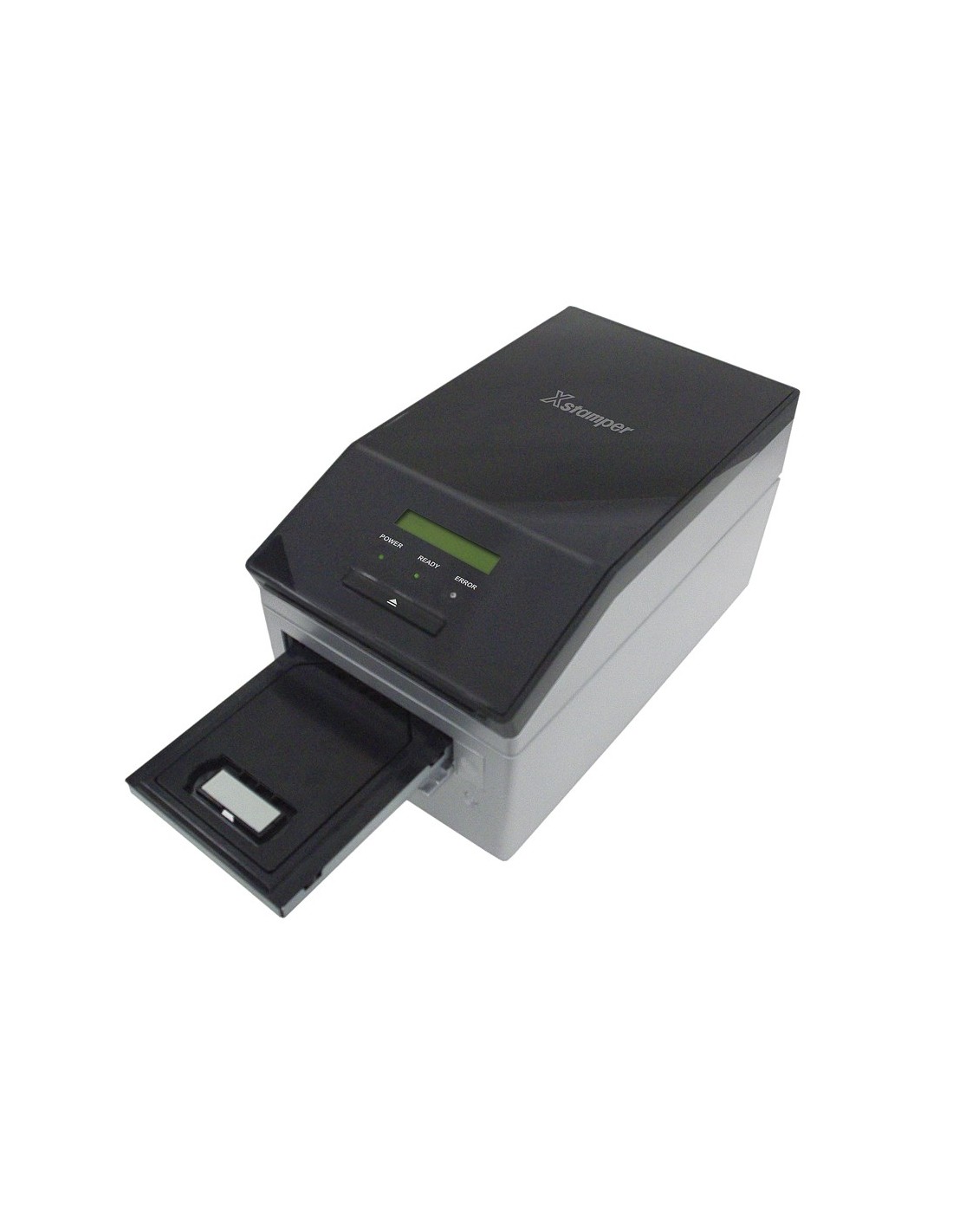 La máquina X Stamper Quix de sellos preentintados viene equipada con todo lo necesario para hacer sellos. Admite hasta 15 tipos de sellos en diferentes tamaños. Incluye software con guía. Interface: USB2.0(Hi-Speed), Ethernet. Sistemas compatibles: Windows XP / 7 / 8 / 8.1 / 10. Espacio de impresión: 53 x 100 mm. Resolución: 600 dpi. Medidas: 222 x 384 x 228 mm. Peso: 7 kg.