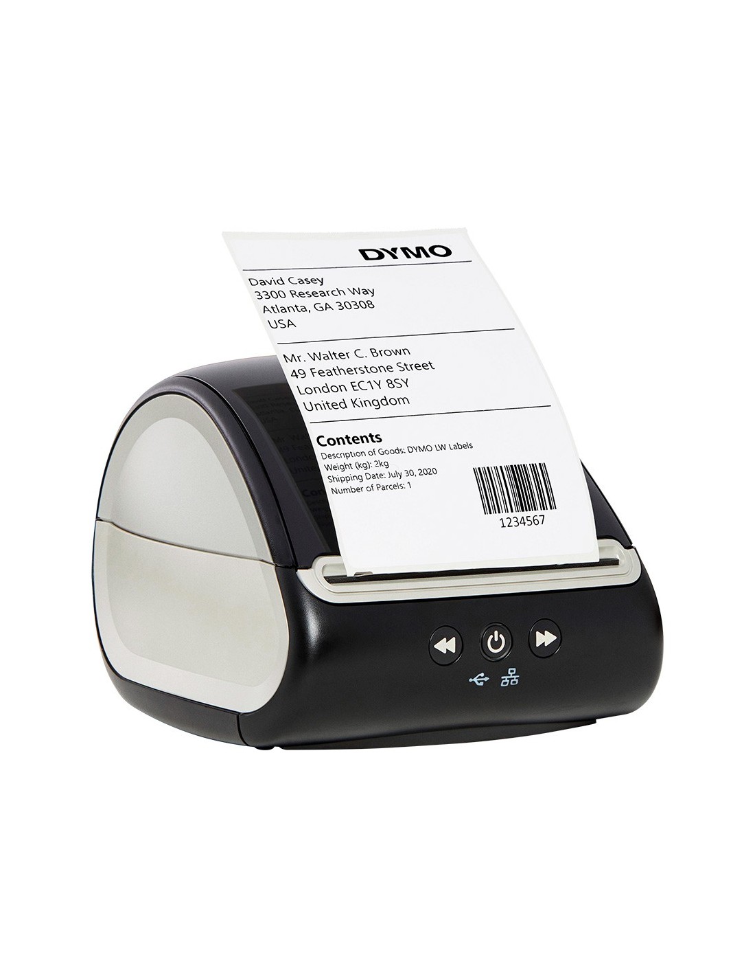 Impresora profesional de etiquetas de envío XL de alta velocidad. Utiliza la tecnología de impresión térmica directa, sin necesidad de tinta o tóner. Se conecta a la aplicación inteligente DYMO® Connect, lo que permite una gran variedad de opciones de diseño. Diseño gráfico nítido con una resolución estándar de 300 x 300 DPI. Incluye: LabelWriter 5XL, 1 rollo de etiquetas para envío extragrandes (104mm x 159mm), adaptador de CA, cable de alimentación, cable USB, guía de referencia rápida, 2+1 años de garantía limitada. Medidas: 250 x 250 x 260 mm. Peso 2,1 kg.