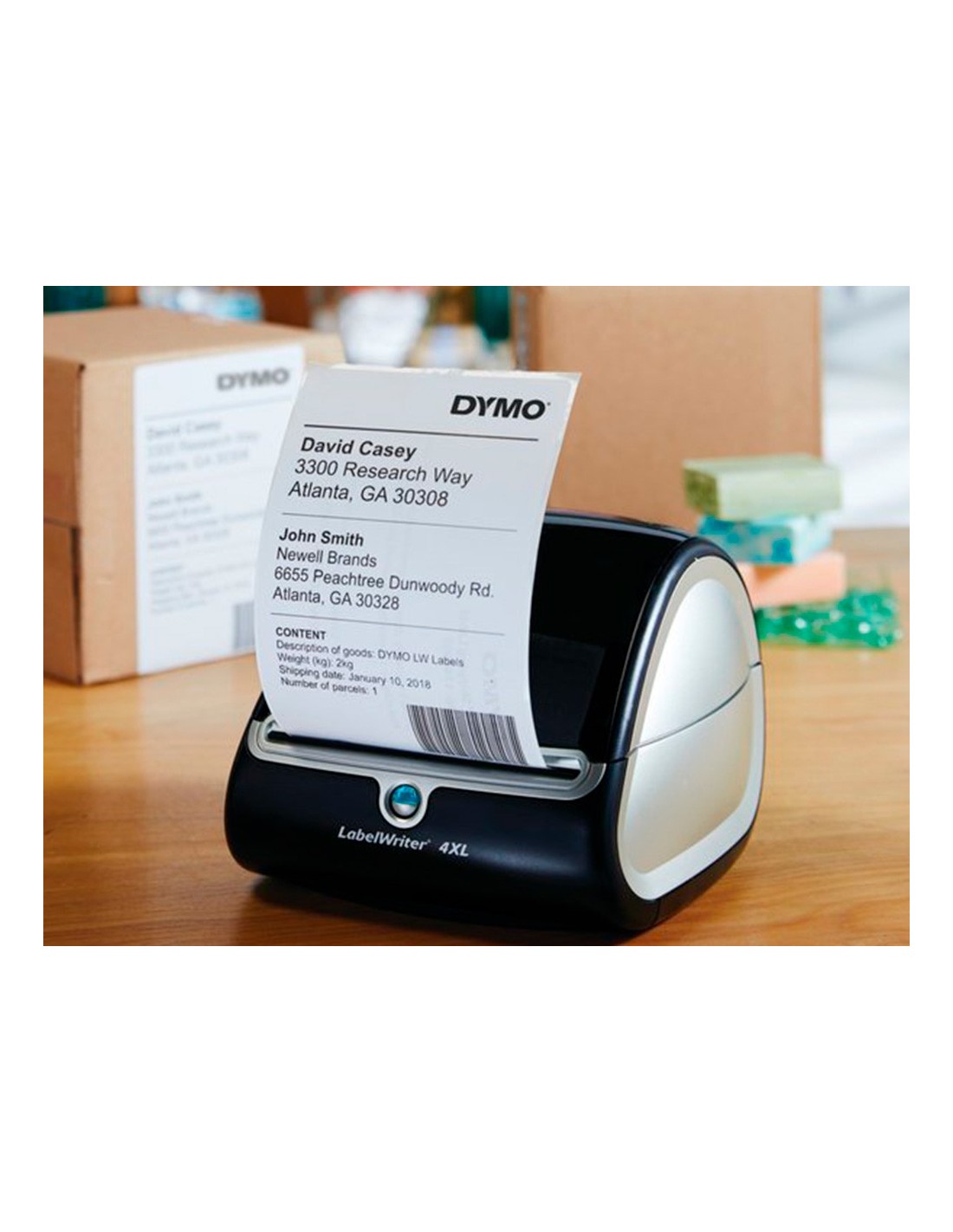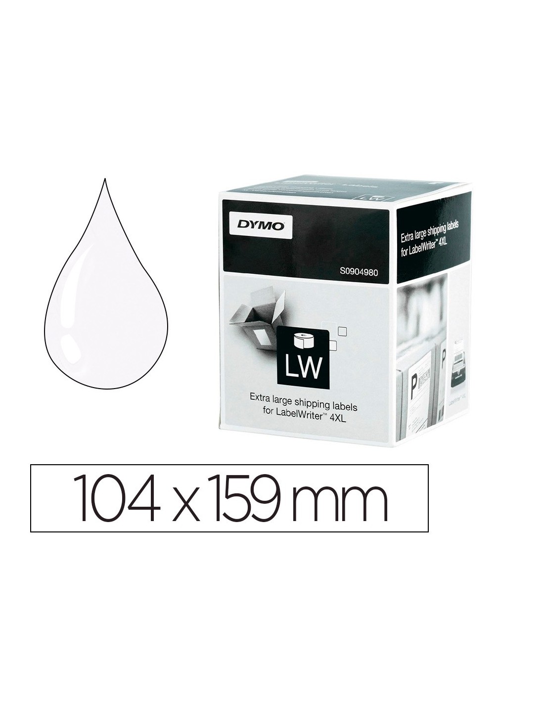 Etiquetas extragrandes de envío para etiquetadoras LabelWriter 5XL. La impresión de caracteres de color negro intenso sobre fondo blanco mediante transferencia térmica no produce borrones ni manchas, eliminando la necesidad de cartuchos de tinta o tóneres. Reverso fácil de retirar para un etiquetado exacto, rápido y sencillo. Empaquetadas en rollos sin residuos. Cumplen las normativas europeas ROHS, REACH, ISO 9001, ISO 14001. Medidas de la etiqueta: 104 x 159 mm.