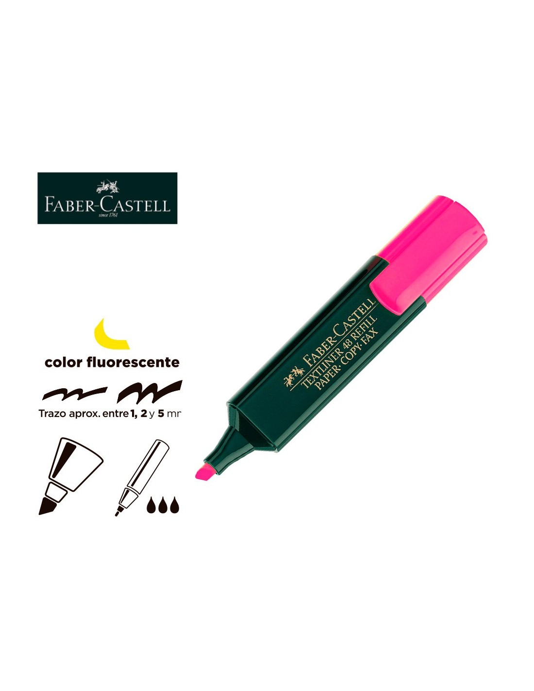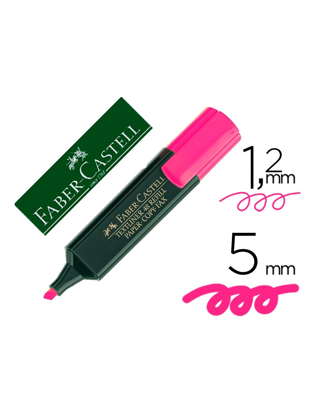 Marcador fluorescente con tinta a base de agua. Ideal para todo tipo de papel normal y especial. Respetuoso con el medio ambiente. Recargable con Texline 1549 Automatic Refill. Punta biselada. Trazo de 1,2 a 5 mm.