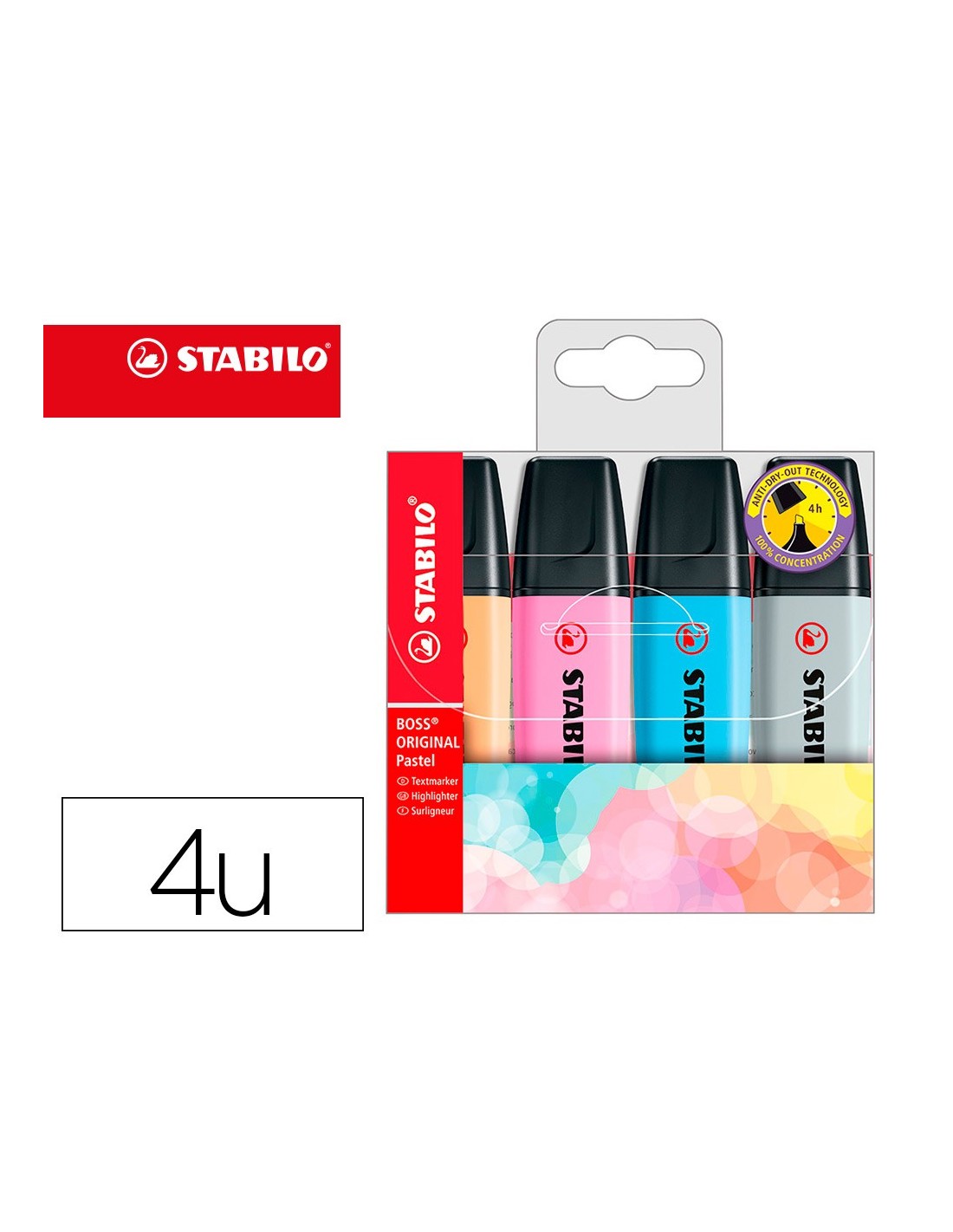 ROTULADOR STABILO BOSS FLUORESCENTE 70 PASTEL 4 UD.SURT.