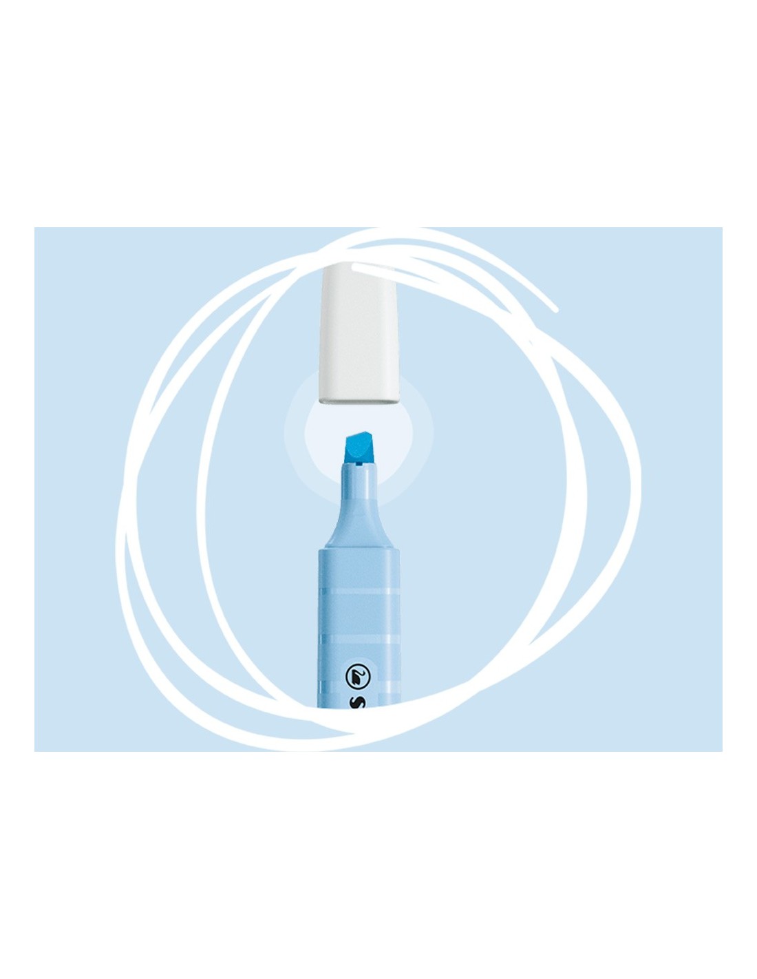 Rotuladores fluorescentes en colores pastel. Con tecnología anti secado (4 horas destapado sin secarse). Tinta a base de agua, resistente a la luz en todo tipo de papel: normal, fax, fotocopia, etc. Capuchón ventilado. Punta biselada. Modelo plano de bolsillo. Trazo de 2 a 5 mm.