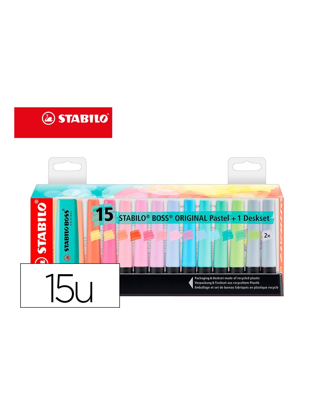 ROTULADOR STABILO BOSS FLUORESCENTE 70 PASTEL DESKSET 15 UD.SURT.