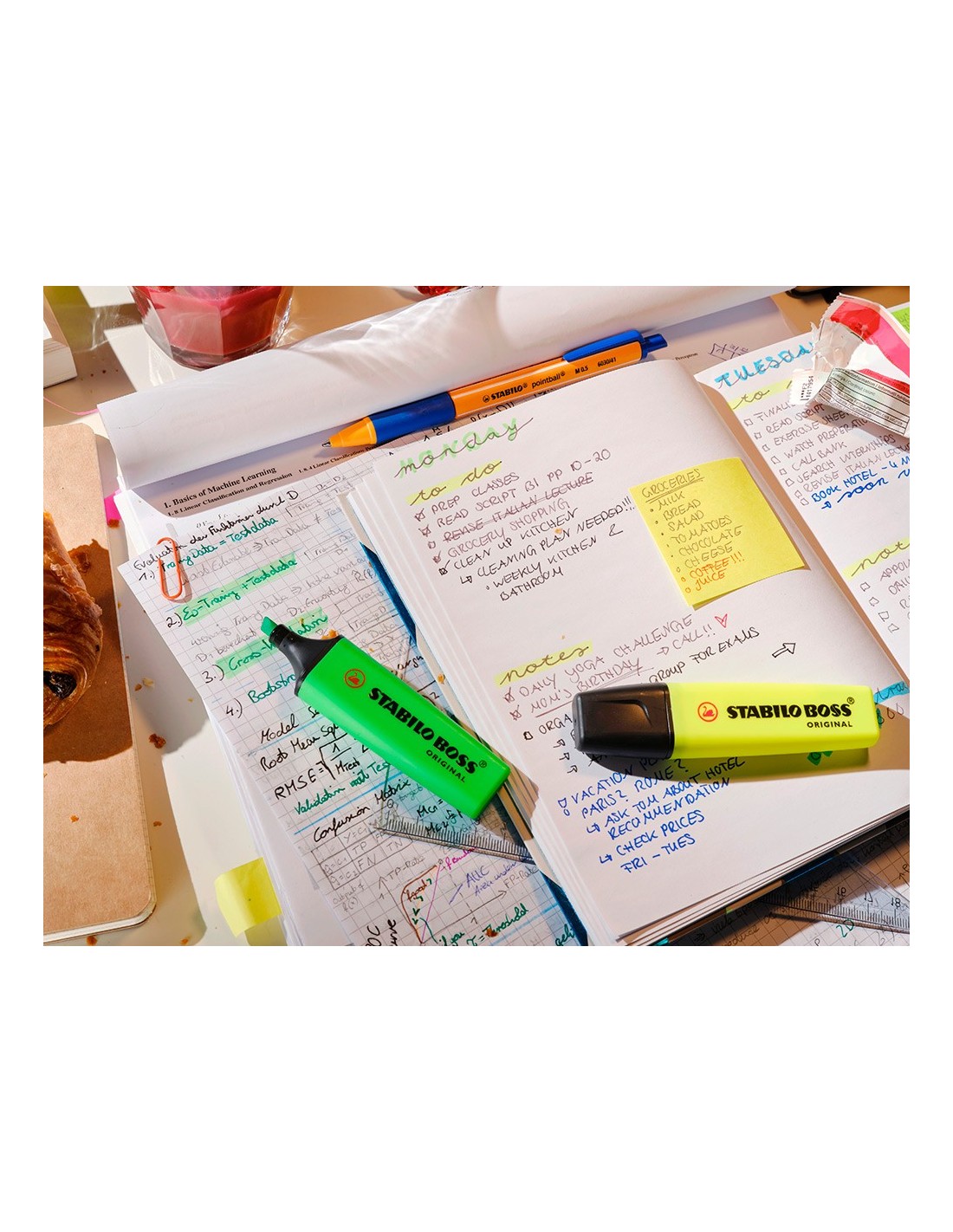 Rotulador fluorescente antisecado, hasta 4 horas destapado sin secarse para poder concentrarse en el trabajo. Resistente a la luz en todo tipo de papel normal, térmico y fotocopias. Punta biselada. Trazo de 2 a 5 mm.