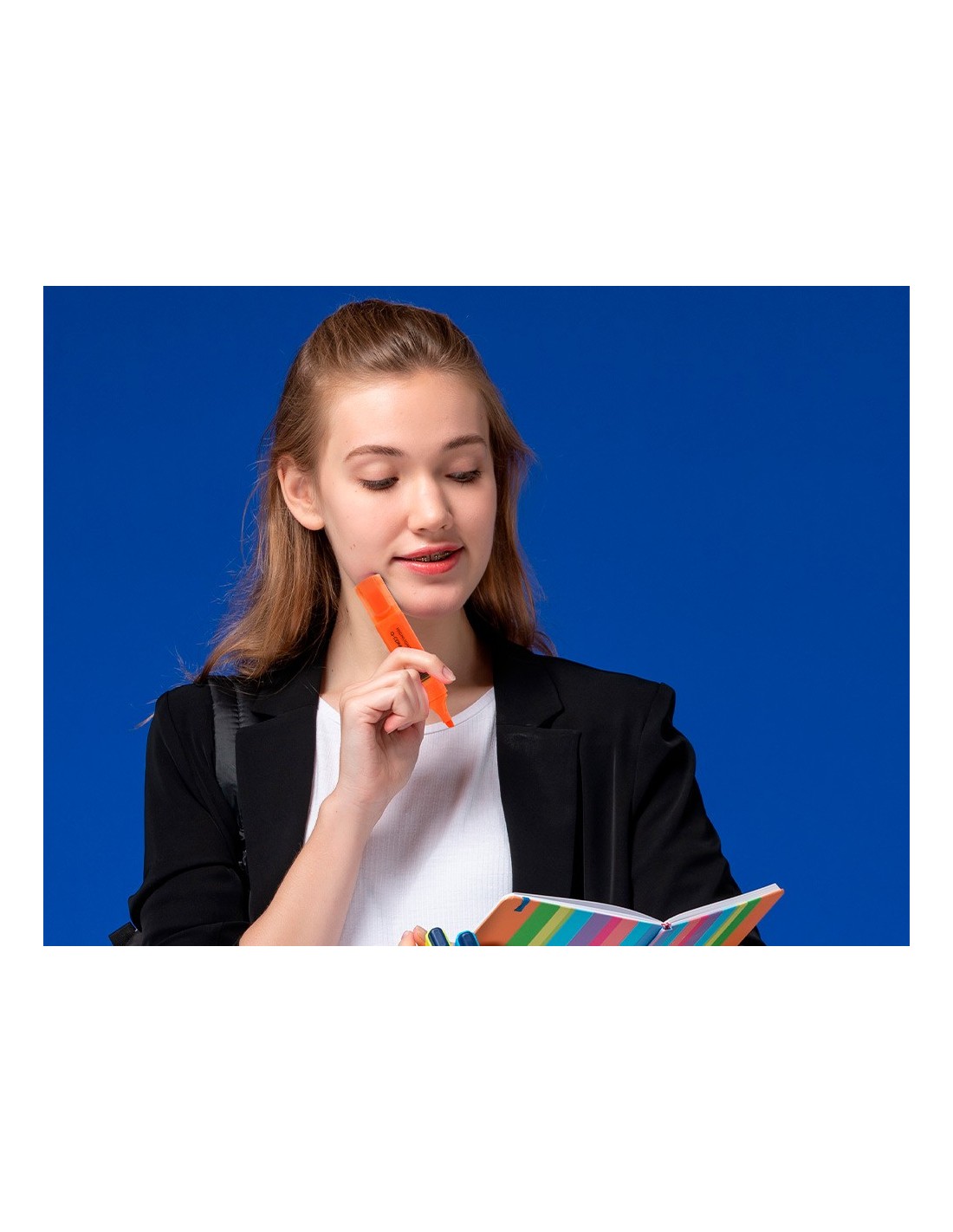 Punta biselada. Tinta con base de agua. Cuerpo del color de la tinta. Capuchón con clip. Trazo entre 1 y 5 mm.