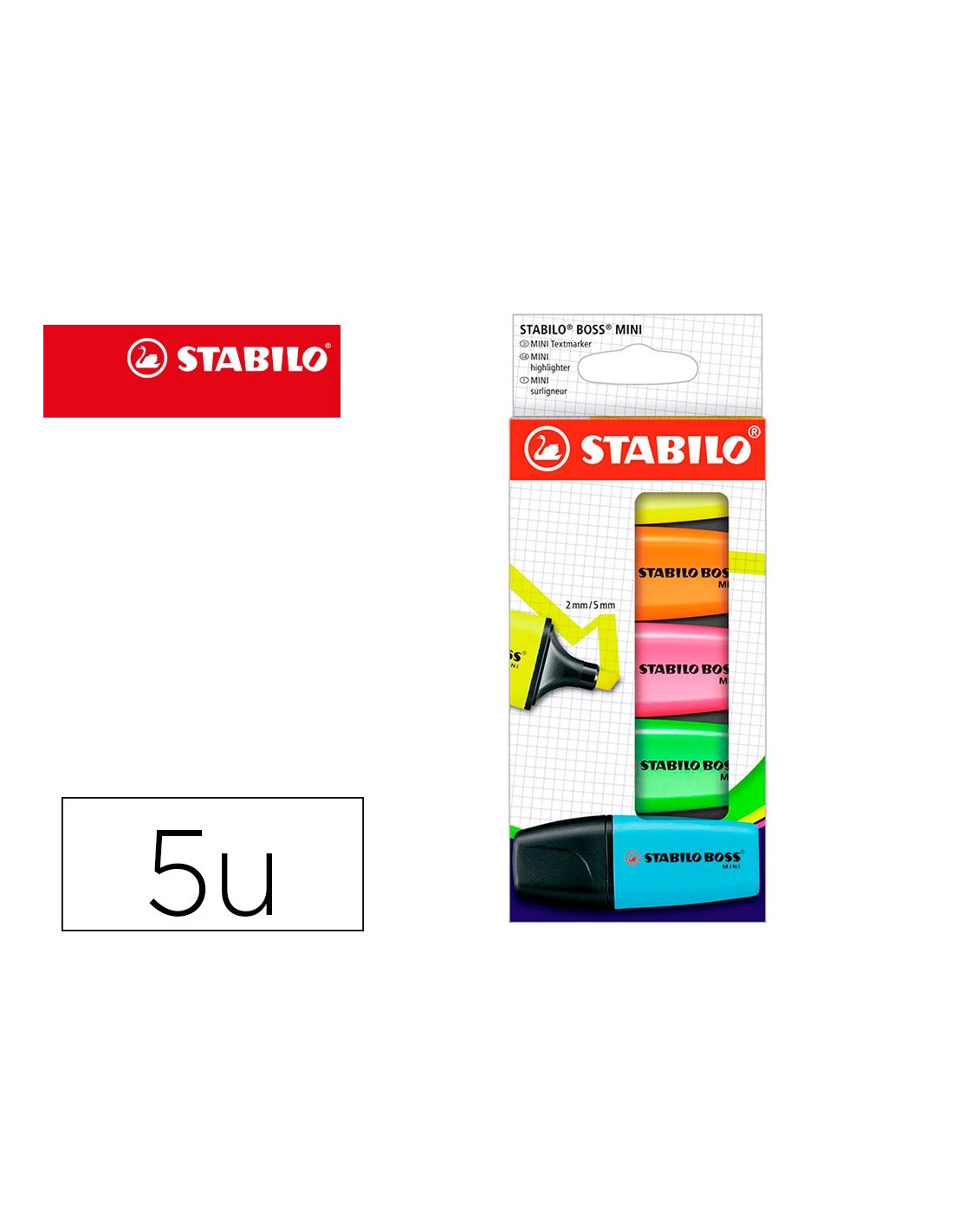 ROTULADOR STABILO BOSS MINI 5 UD.AM./AZUL/NARANJA/ROSA/ VE.